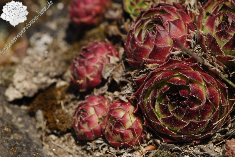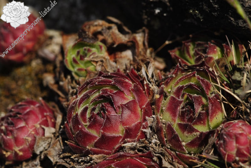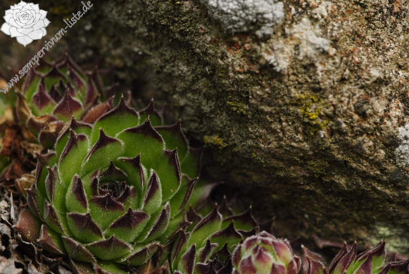 Die meisten Rosetten am Naturstandort waren geschlossen, äußere Rosettenblätter der Rosetten waren vor allem rot, dunkel rot oder lila rot gefärbt. Kein Wunder – ich habe der Naturstandort in der zweiten Hälfte Aprils besucht und an den senkrechten Felswänden herrschen anspruchsvolle Lebensbedingungen.