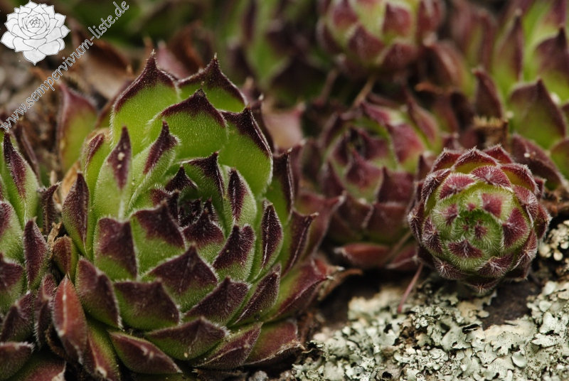 - 16. April 2017Ein paar Rosetten waren geöffnet, die Spitzen der Rosettenblätter waren dunkel lila gefärbt - die Rosetten von S. matricum sind gewöhnlich groß