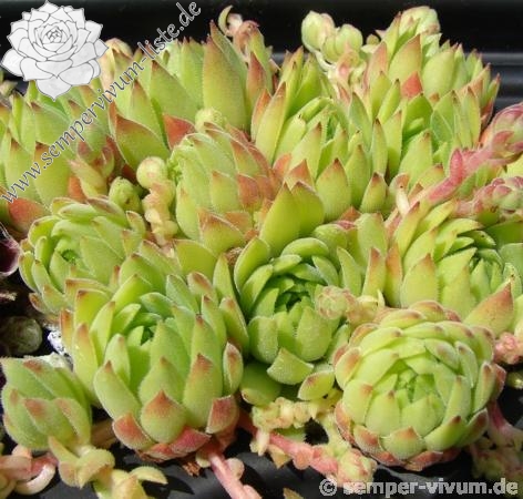 Erwin Geiger: Diese Form wird mittlerweile zur Unterart S. marmoreum ssp. reginae-amaliae gezählt. Kleinere, samtige, apfelgrüne Rosetten mit bronzefarbenen Tönen im Frühling und Herbst an vollsonnigen Standorten. Der Klon stammt aus einer Bergkette Mittelgriechenlands.
