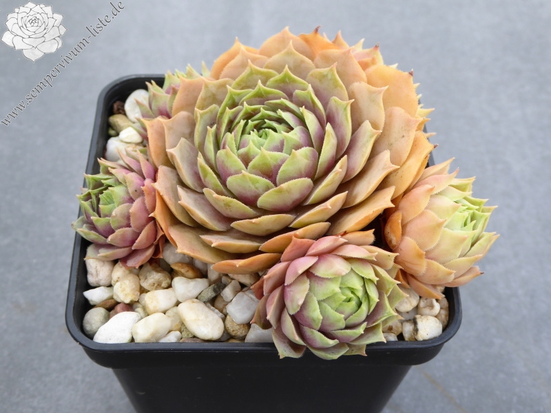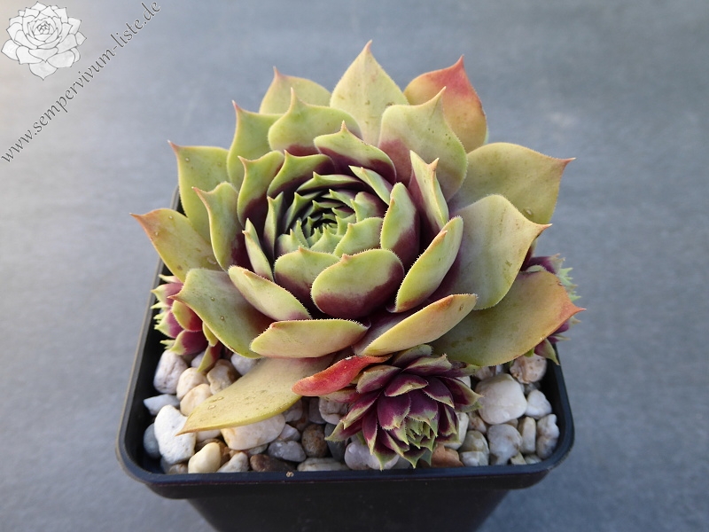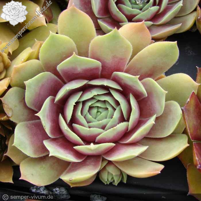 Diese deutsche Auslese wurde schon vor 17 Jahren eingeführt und ist uns erst in den letzten Jahren zugekommen. Sie formt größere Rosetten in Rosaviolettpurpurnen Farben. Im Sommer verfärbt sich der äußere Teil der Blätter in pastellfarbenes Jadegrün. Eine empfehlenswerte Hybride die wir für sie vermehrt haben.