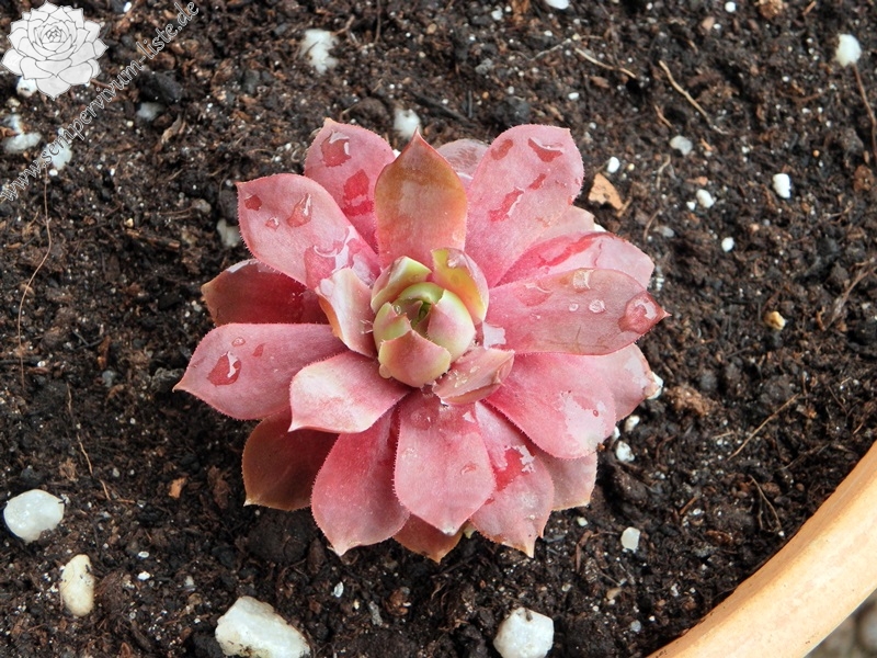 Die Anzucht der vielen Nachkommen hat bereits zehn Jahre in Anspruch genommen und wir freuen uns, dass wir Ihnen nun mit diesem ausgewählten Sämling endlich eine Freude machen können. Für alle Hauswurzfreunde, die die Art der großmütterlichen Abstammung von Sempervivum wulfenii kennen, ist diese Sämlingsauslese von 'Else' ganz einfach zu beschreiben: Sie gleicht in Form, im Wuchs und auch der Bildung von eher wenig Nachwuchs eines großrosettigen Klons der reinen Art, doch statt der jadegrünen Farbe zeigt das 'Maßliebchen' eine bezaubernde Färbung in Rosa, das man von April bis Juni schon als Pink beschreiben kann.