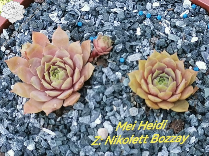 Mutterpflanze ist 'Blade of Steel', die Aussaat erfolgte im Jahr 2020. Die Rosetten sind ca. 10 cm groß im Durchmesser, die Blätter sind breit und verlaufend werden sie ziemlich spitz. Am Blattrand befinden sich winzig kleine, zarte Wimpern. Die Färbung variiert sich im ganzen Jahr, es dominieren hauptsächlich die Pastellfarben. Im Frühjahr ist sie beige, silbrig, mit gelb gemischt und sobald es wärmer wird bekommt sie von innen heraus, rosa, gelbe, dann orangene Farbtöne. An den Blattspitzen ist sie rötlich. Die tollen Marmorierungen kommen ab Mai, sie erleuchten in weißen Farben. Sie ist eine gute Mutter, eine sehr kindelfreudige Pflanze.