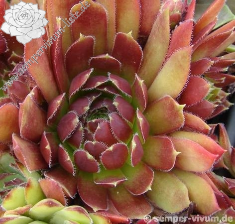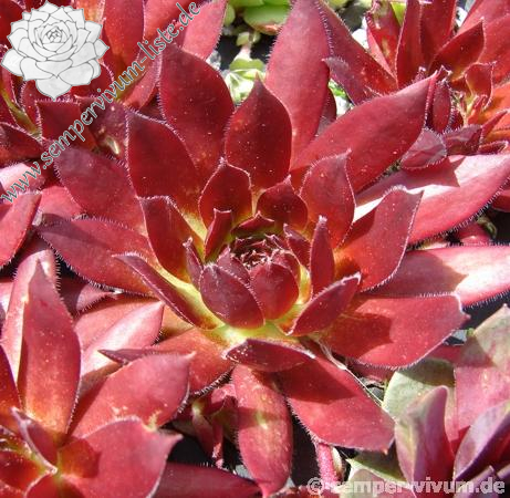 Rosetten bis 5 cm, Blätter lanzettlich, kurz bespitzt, weinrot