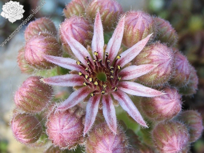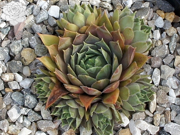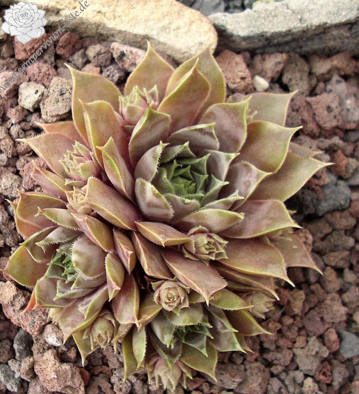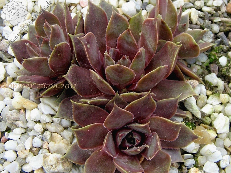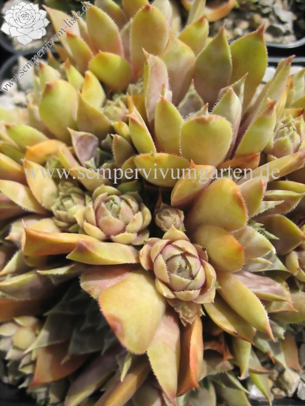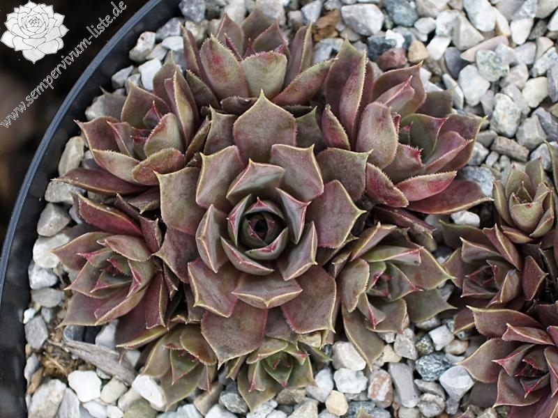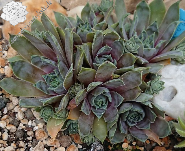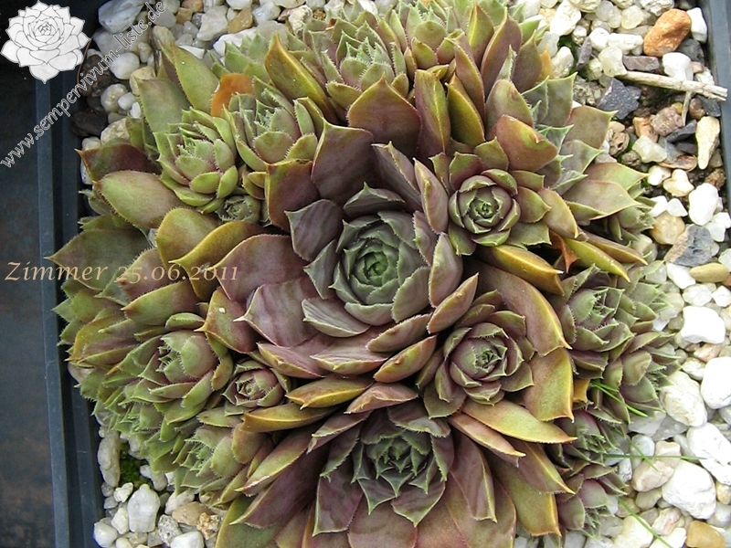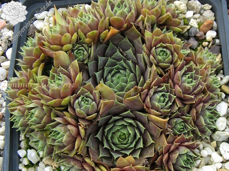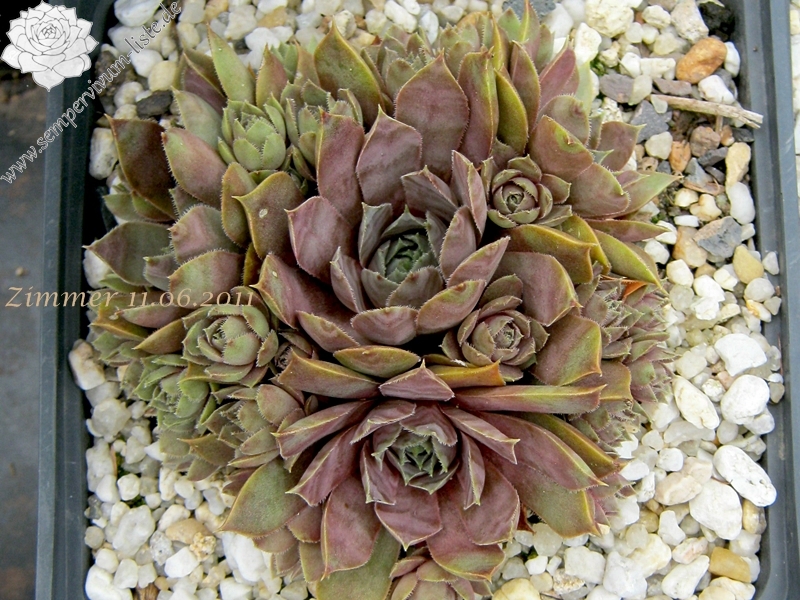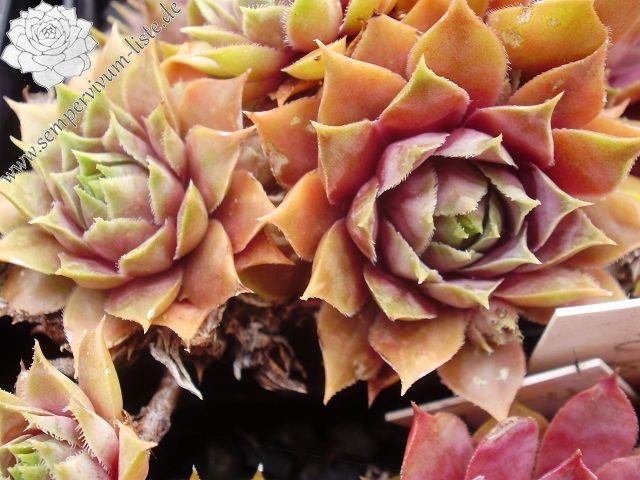 Eine S. wulfenii Hybride aus Nürtingen mit stark spitzigen Blättern in bräunlichen Tönen, die sich zu verschiedenen Jahreszeiten auch in rosa und violett verfärben.