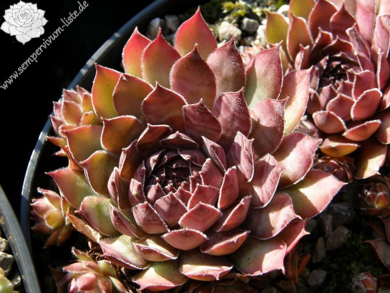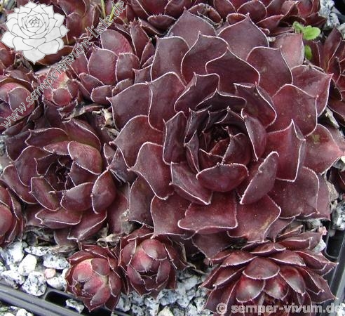 Die Sorte von Carlo de Wilde formt mittelgroße Rosetten in düsterer Färbung. Die Farben und auch die Form sind unserer Meinung in der kalten Jahreszeit interessanter.