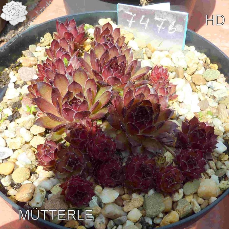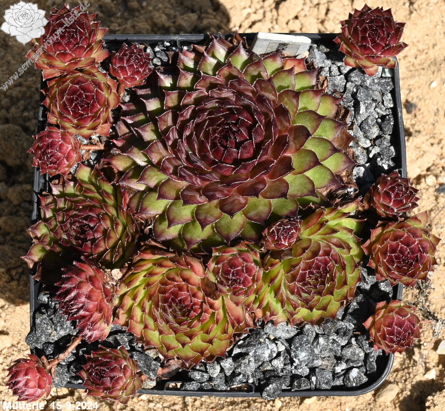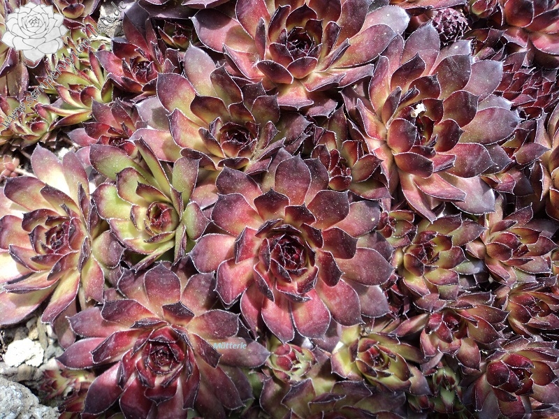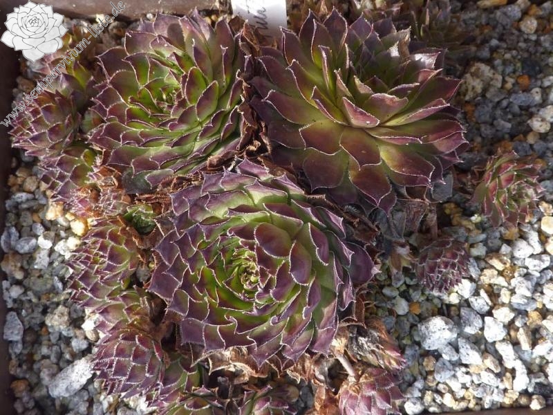Es ist schon etwas fragwürdig ob dieser Sämling noch einen Namen verdient hatte. Es gibt so gut wie keinen Unterschied zu 'Altenberg' aus dem Jahr 1965 oder 'Eldorado' von 1980 aus der Schweiz. Die Rosetten sind eher klein bis mittelgroß und formen dichte Polster.