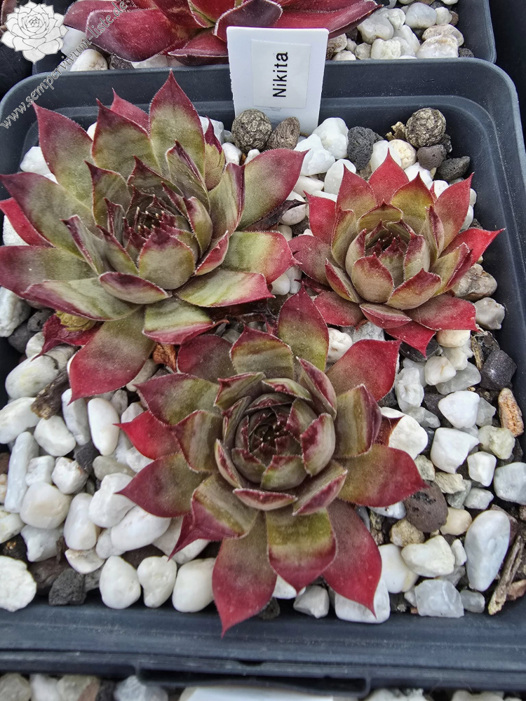 'Nikita' ist ein Sämling von 2016, der mir durch seine seltsam kalte, blaue Farbe auffiel und den ich unbedingt beobachten wollte. Inzwischen hat er sich völlig anders entwickelt und zeigt diese Farbe nicht mehr. In seiner Hochzeit zeigt er sich in einem aus Graublau, leicht mit Violett gemischten Farbton. Die äußeren Blattspitzen sind leuchtend Rot, was nach unten hin zu einem Hauch zartem Orange ausläuft. 'Nikita' kindelt sehr gut und die Ableger bleiben eng an der Mutterpflanze ohne übermäßig lange Stolonen zu bilden.
