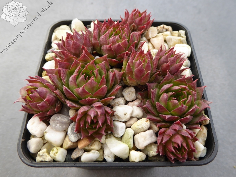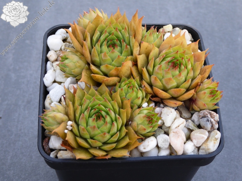 Rosetten bis 6 cm, Blätter lanzettlich, lang bespitzt, Mischfarben hellgrün - altrosa - beigebraun