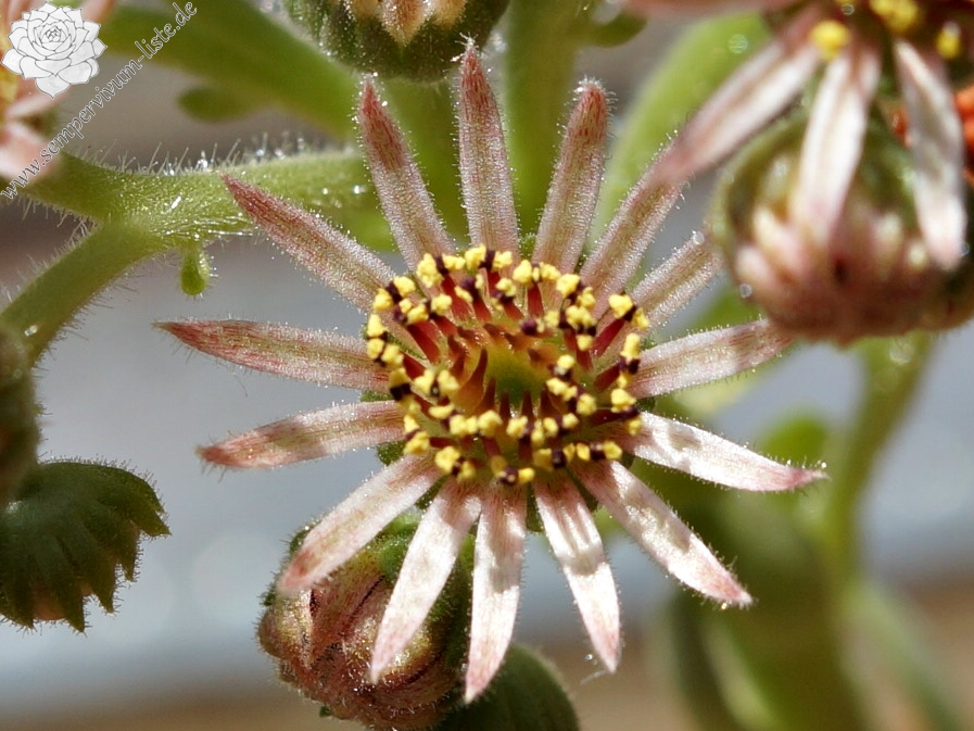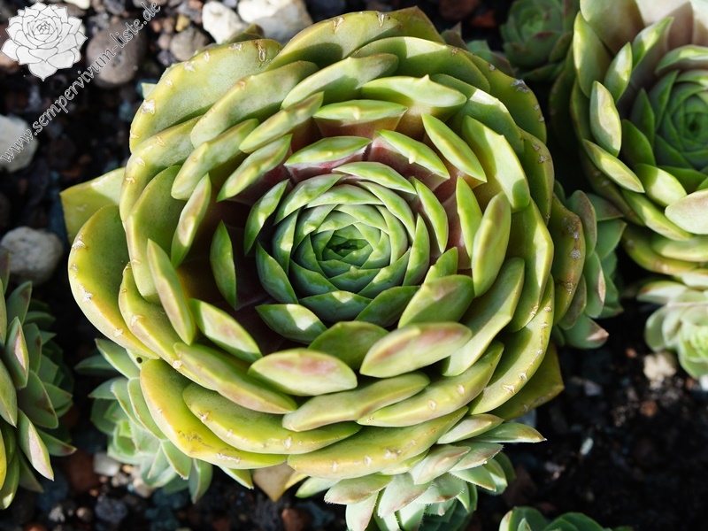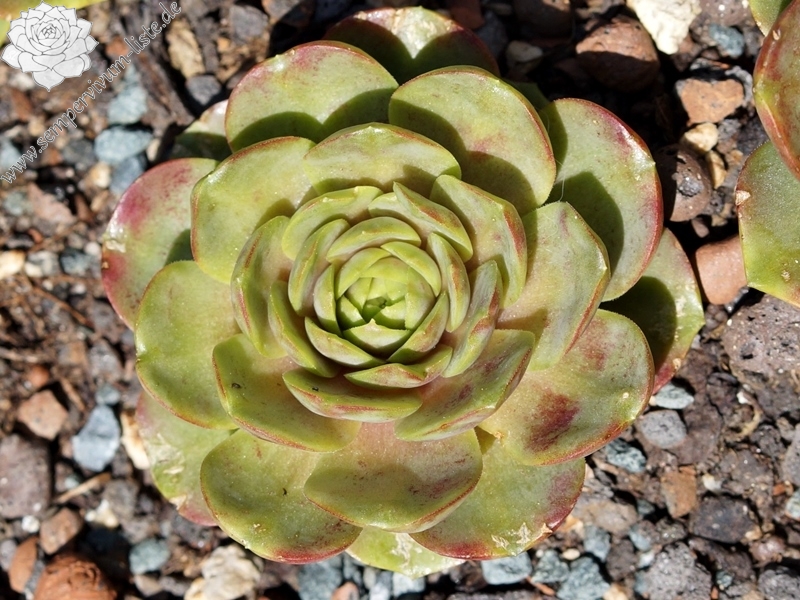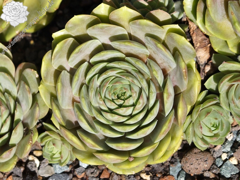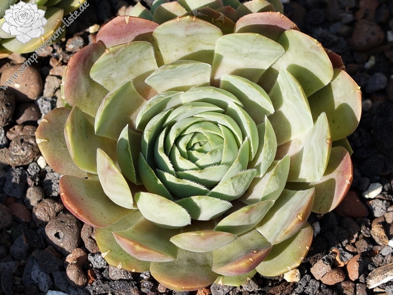 Die Rosetten werden oft mehr als 9 cm groß, wenn man ihren kräftigen Wurzelballen auch den Raum dazu gibt.