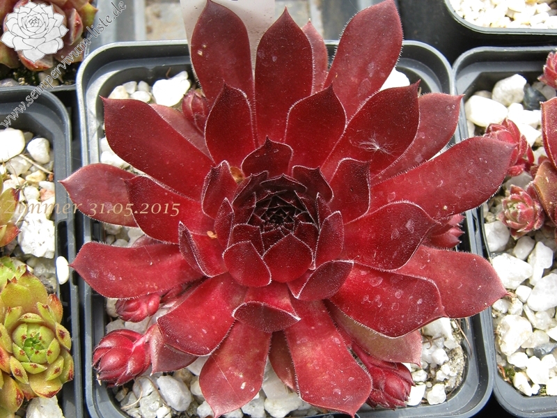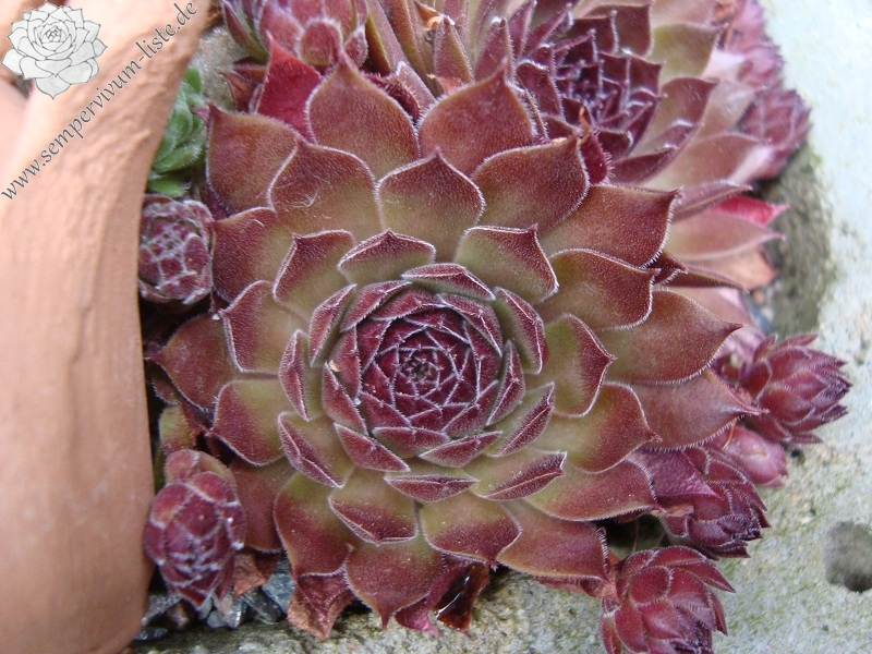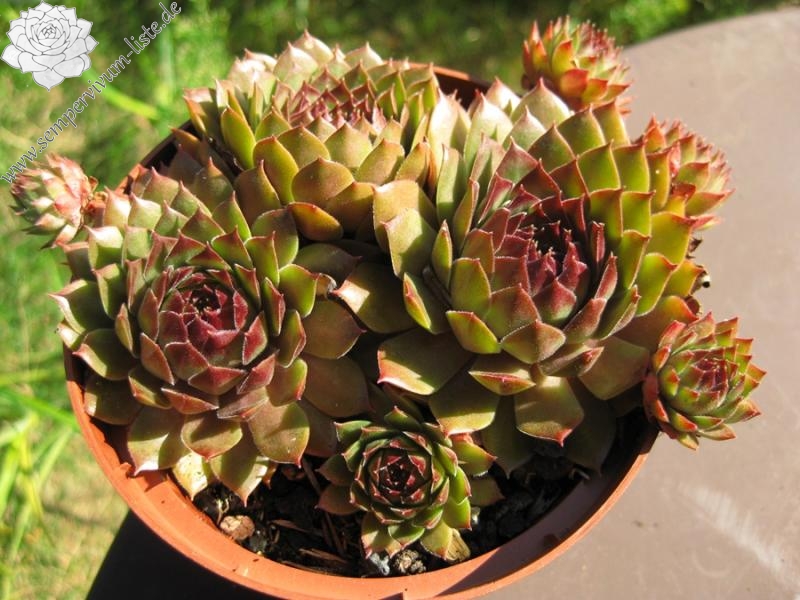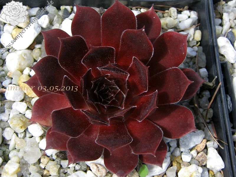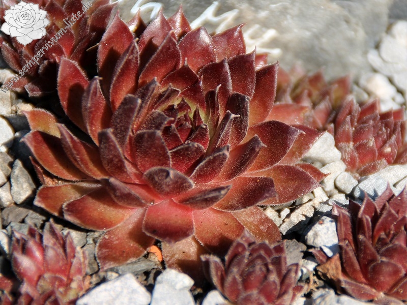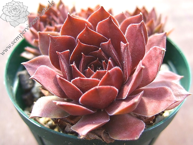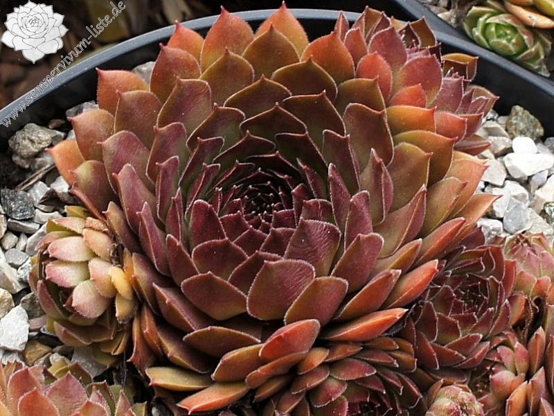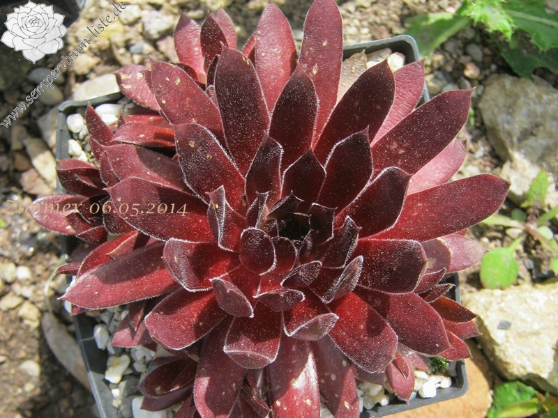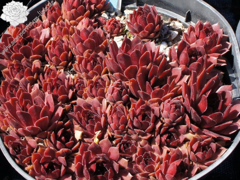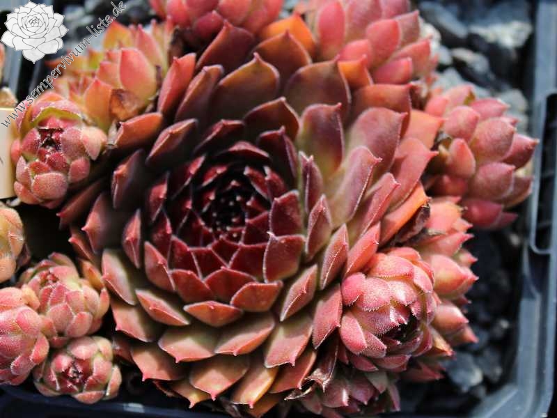 Der Name ist wirklich passend! Die samtigen, mittelgroßen Rosetten spielen mit roten und olivgrünen Tönen. Die Pflanze stammt aus Frankreich - die Herkunft ist unbekannt. Egal: Ein Muss fur jeden Sempervivumfreund!