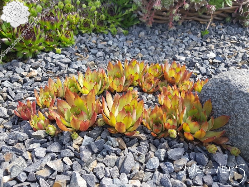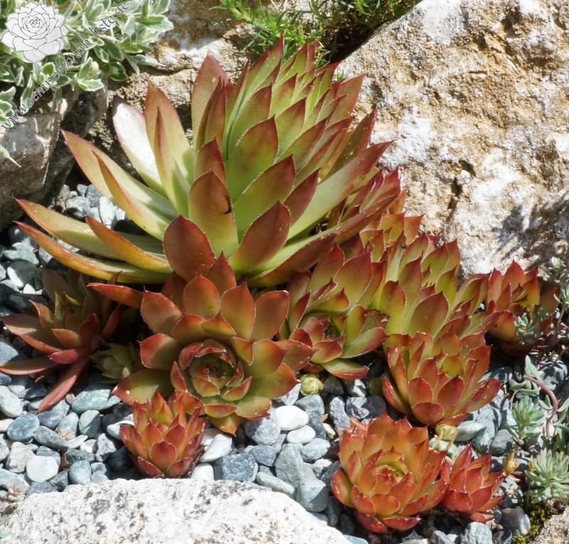 Diese Neuheit zeigt einen bei Sempervivum seltenen Farbton. Die größeren, kugeligen Rosetten leuchten im Frühjahr auffallend orange! Später verfärben sie sich knallrot. Eine wirklich brillante Neuheit!