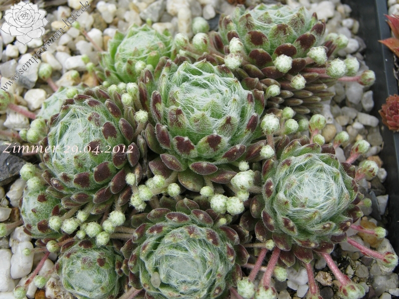 Rosetten 2-3 cm, grün, kugelig, weiße Spinnweben
