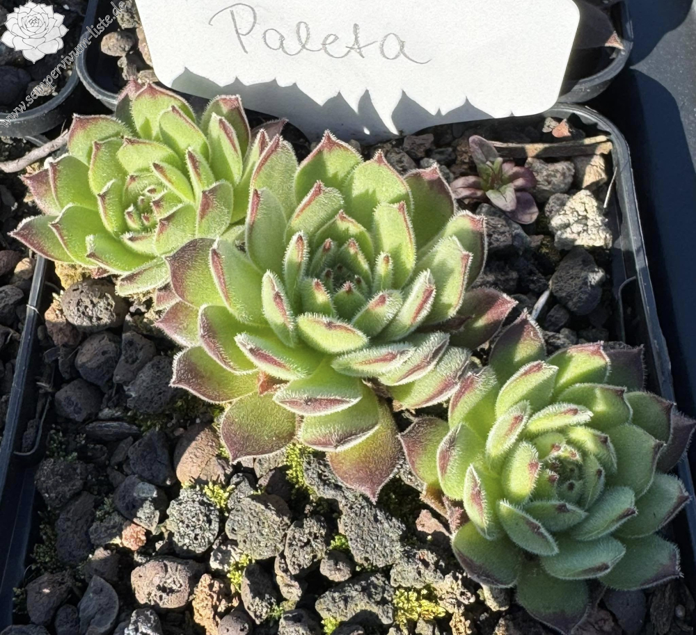 Die mittelgroßen, hellgrünen Rosetten zeigen schöne rötlich gefärbte Blattenden. Die Pflanzen sehen richtig samtig aus. Leider werden meist die grünen Sorten zu wenig beachtet.