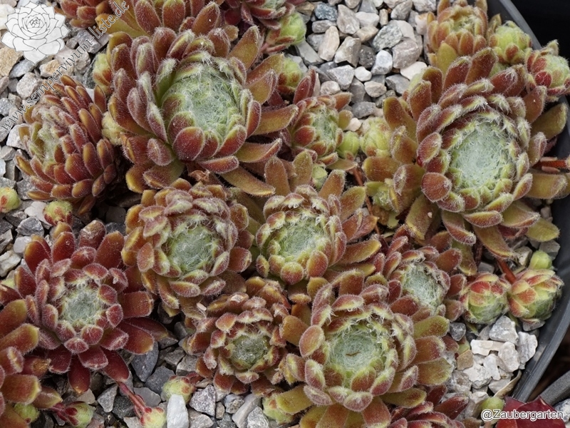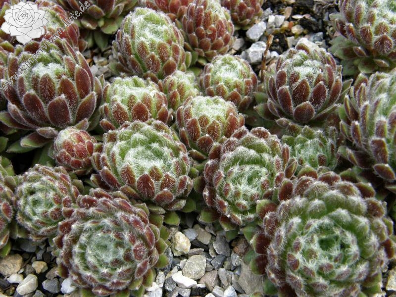 Der S. arachnoideum Kultivar formt 2 - 4 cm O große Rosetten, die samtig weiß behaart und übersponnen sind. Eine Auslese von 1990.