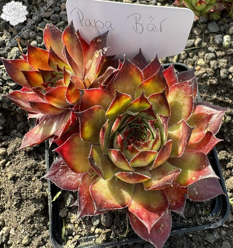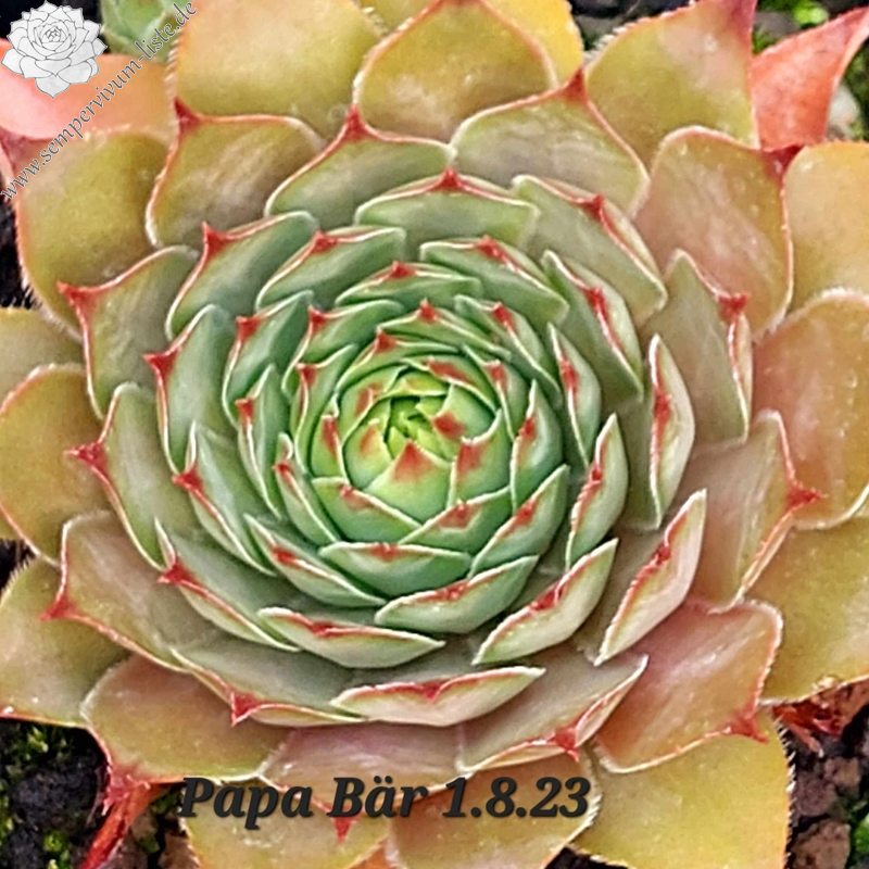 Papa Bär stammt aus einer Saatgutmischung die ich 2015 auf unserem Garagendach ausgesät hatte. Mitte 2016 zeigten sich die ersten Sämlinge. 2020 selektierte ich diesen besonders herausstechenden Sämling.