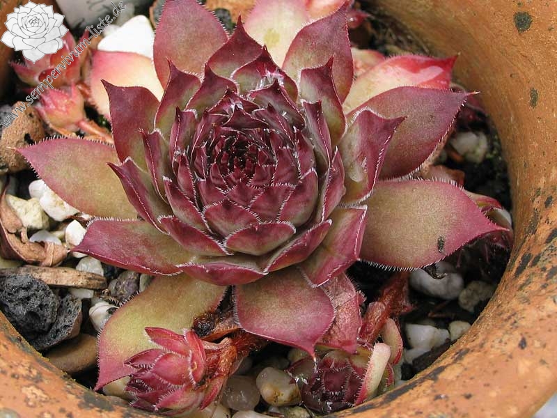 Sempervivum 'Pick-Wick' ist eine gut sprossende Pflanze, die mir besonders im Sommer aufgefallen ist. Die Blattspitzen besitzen dann eine leuchtend rote Farbe. Sehr schön!