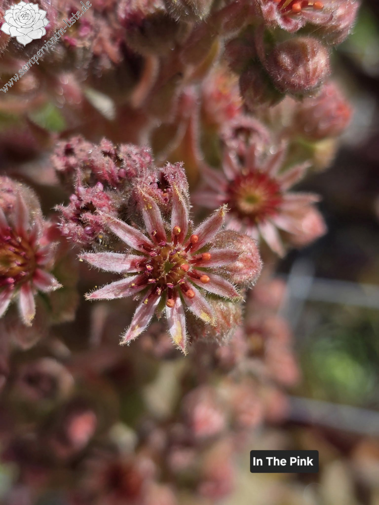Eine attraktive Züchtung von Sue Thomas mit größeren Rosetten. Das Zentrum schmückt sich in prächtigem Rosa - wie der Name schon sagt - "in the pink"!