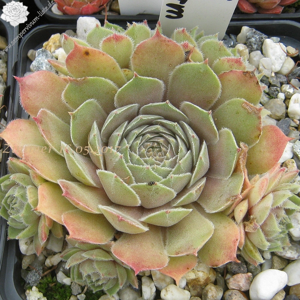Aus der Züchtung von Edward Skrocki stammt der "rosafarbene Liebreiz", wie man den Namen in unsere Sprache übersetzen könnte. Das samtene Laub formt mittelgroße Rosetten in verschiedenen Rosatönen. Ähnlich der Sorte 'Thunder'.