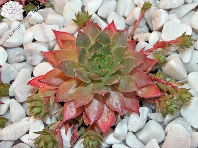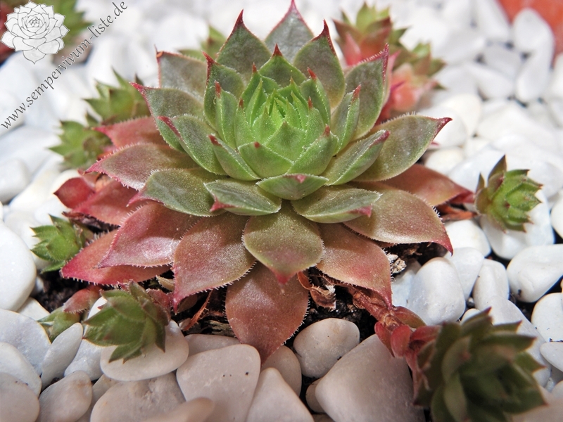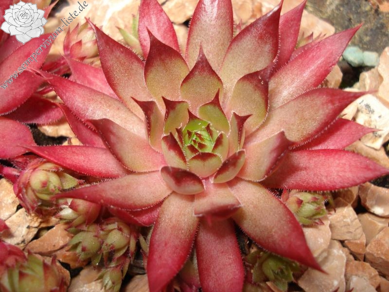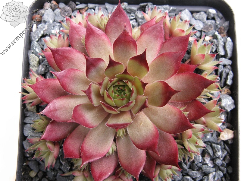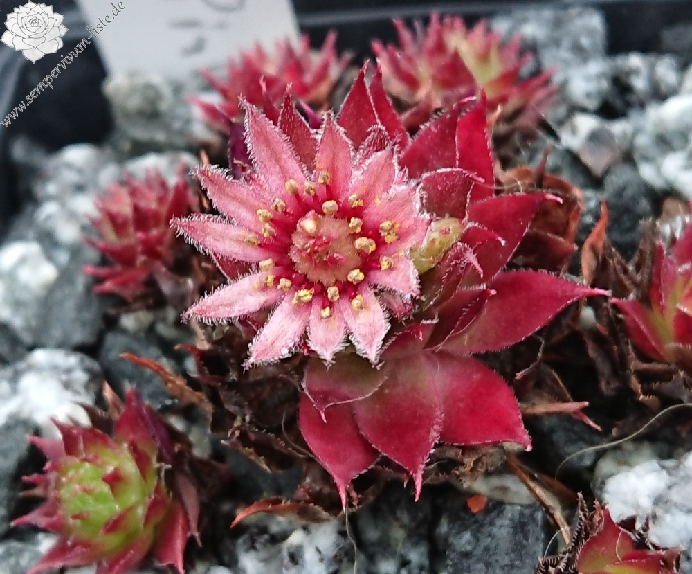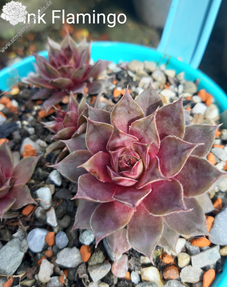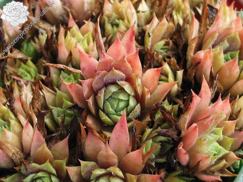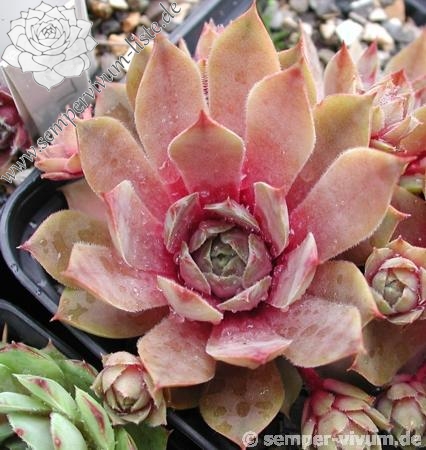 Die Blätter der mittelgroßen Rosetten formen auffallend lang gezogene Spitzen in verschiedensten Rosafarben. Von dieser Sorte findet man auch Bilder mit karminroten und orangen Tönen. Die Sorte ist auch unter dem Namen 'Pink Flamingoes' in Kultur.