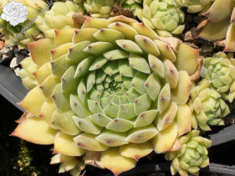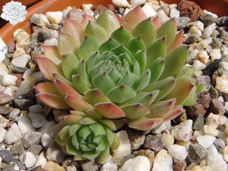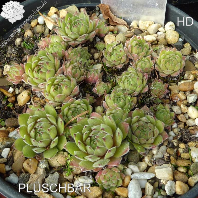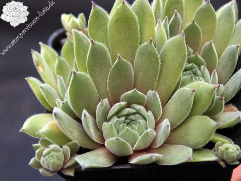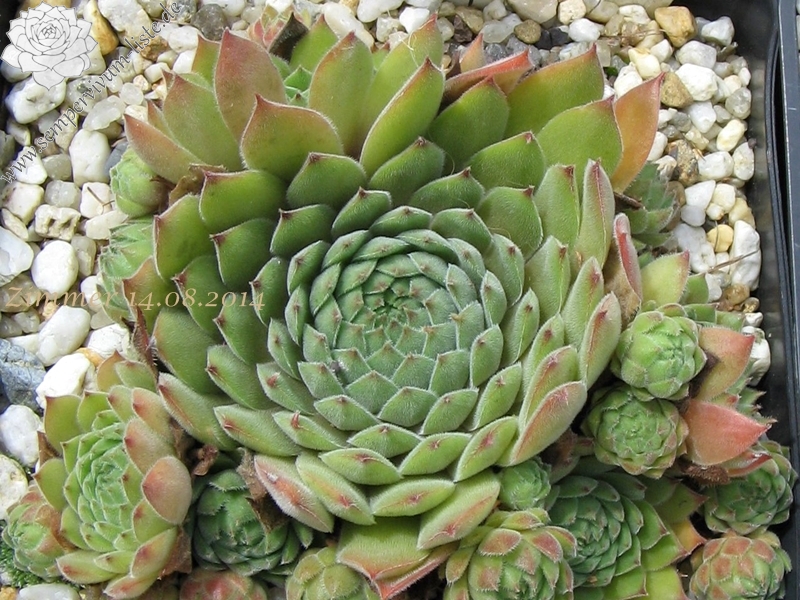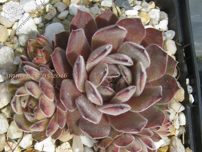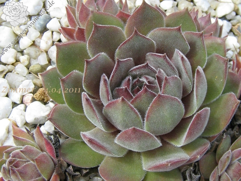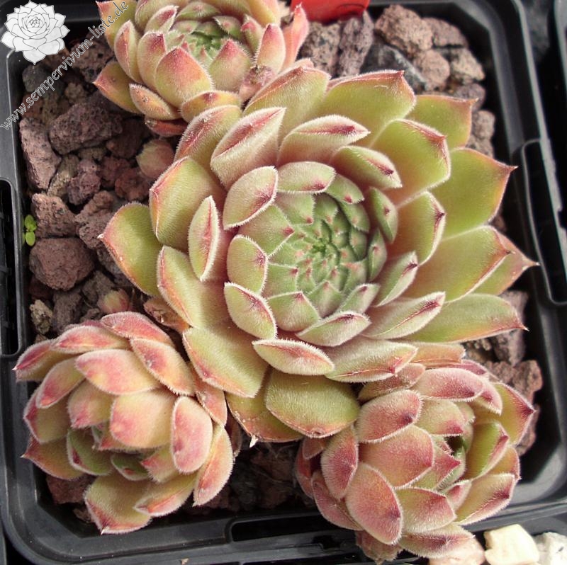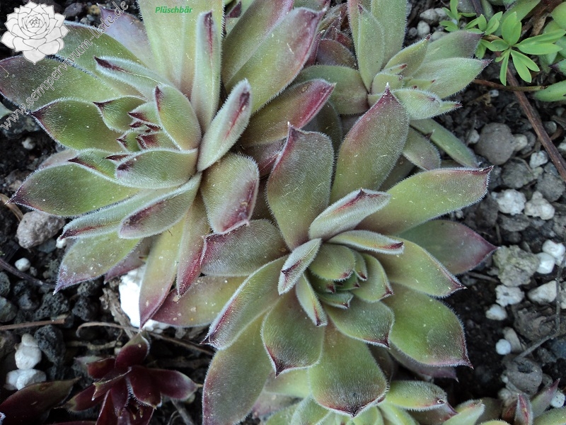 Eine eigene Auslese mit auffallend samtigen Blättern. Die olivgrünen Rosetten erscheinen dadurch silbern. Die Blattenden sind rosarot bis rotpurpurn gefärbt. Dadurch erhält diese Züchtung einen besonderen Charme!