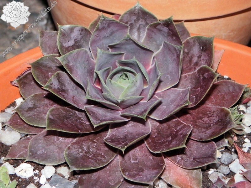 Ein alter Kultivar dessen Herkunft leider nicht bekannt und auch nicht mehr belegbar ist. Sehr große Rosetten die mit braunen, graugrünen bis zu rosaroten Farbtönen spielen