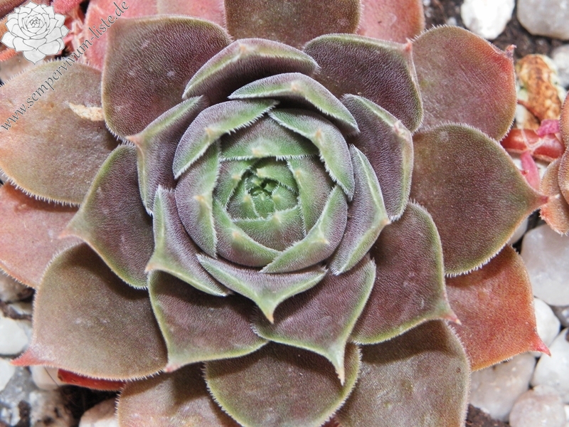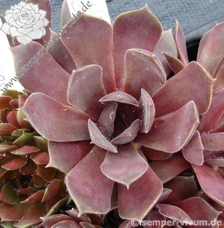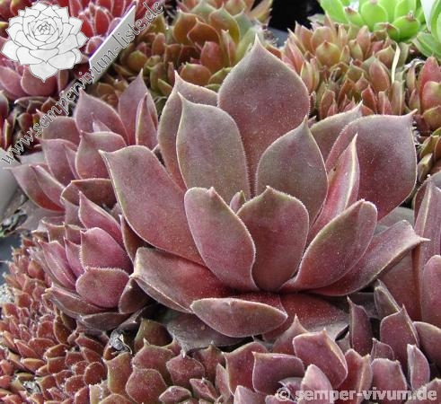 Die belgische Sorte formt eher große Rosetten mit leicht samtenen, rosa-grauen Blättern.