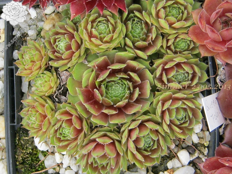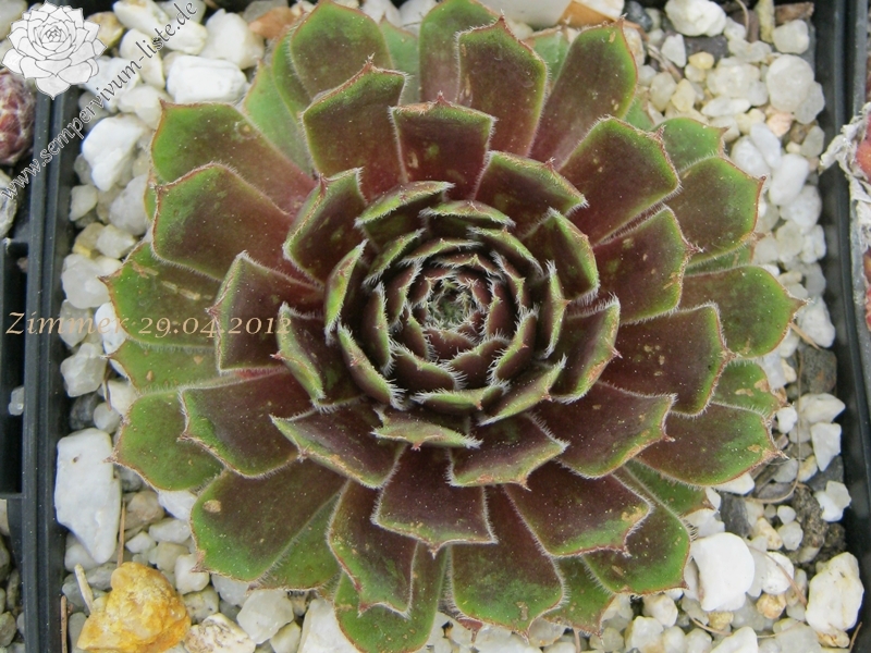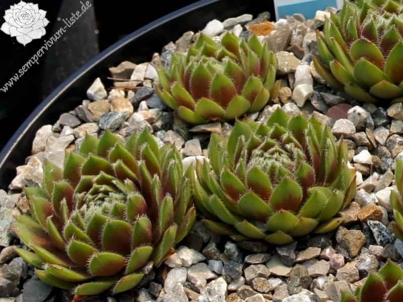 Die deutsche Sorte wurde bereits im Jahre 1977 ausgelesen und ist dennoch bislang kaum bekannt. Die eher mittelgroßen bis kleinen Rosetten besitzen olivgrünes Laub, im Frühjahr mit braunen Schattierungen und kontrastreicher, weißer Bewimperung.