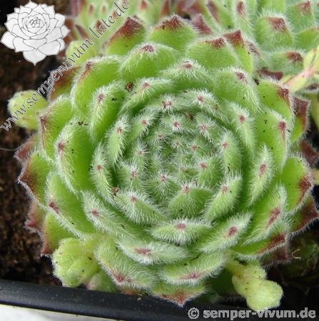 Ein wuscheliger Hauswurz mit auffallend dicht behaarten Rosetten. Die Blätter sind leicht rotbraun bespitzt. Bei diesem niederländischen Schatz sollte man darauf achten, dass er nicht zu nass steht.