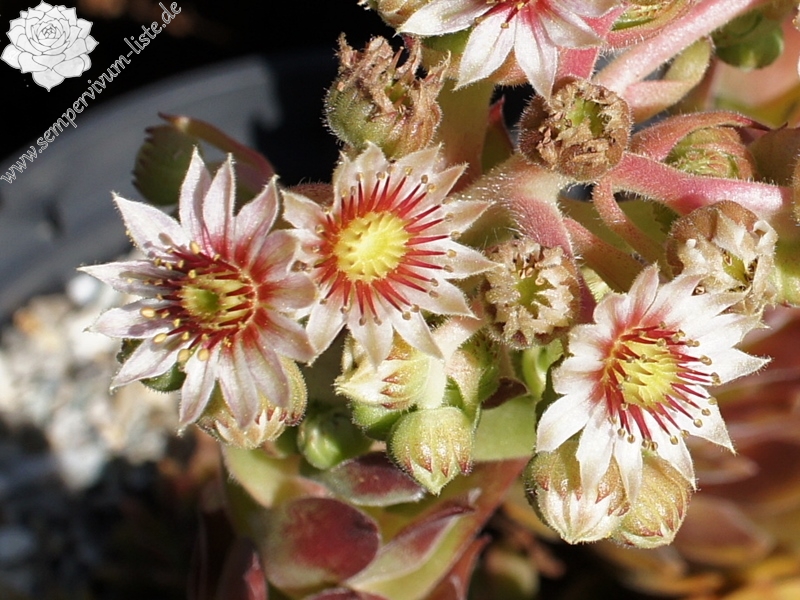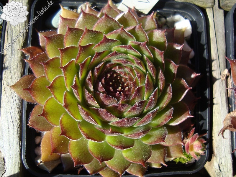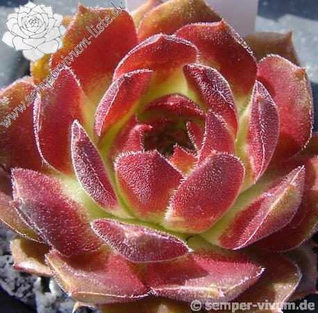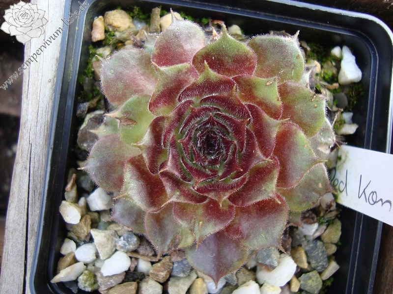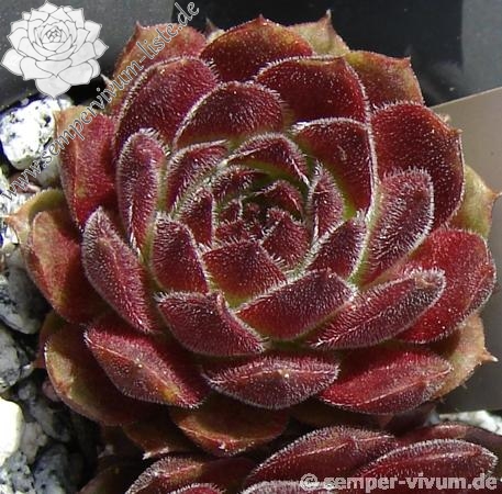 Sempervivum 'Red Königin' ist eine rote, leicht behaarte Sorte. Die wüchsige, mittelgroße Pflanze sprosst willig und bildet dichte Polster.