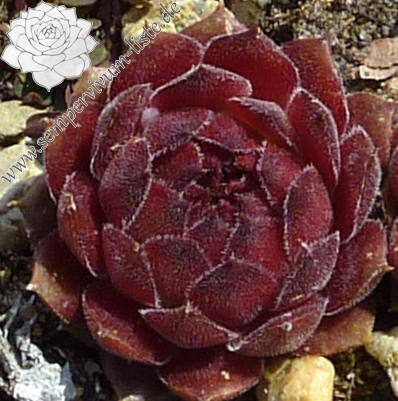 Eine relativ großrosettige Hybride aus Belgien mit purpurvioletter Frühlingsfärbung. Die Blattoberfläche ist samtig behaart, was den Rosetten im Sommer einen silbrigen Glanz verleiht. Zu dieser Zeit wechseln die Farben in terracottafarbenes Olivgrün mit bronzegetönten Blattspitzen.