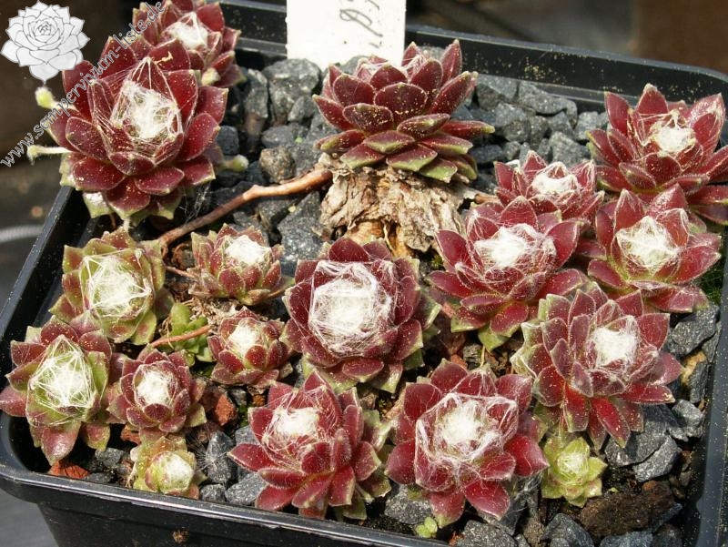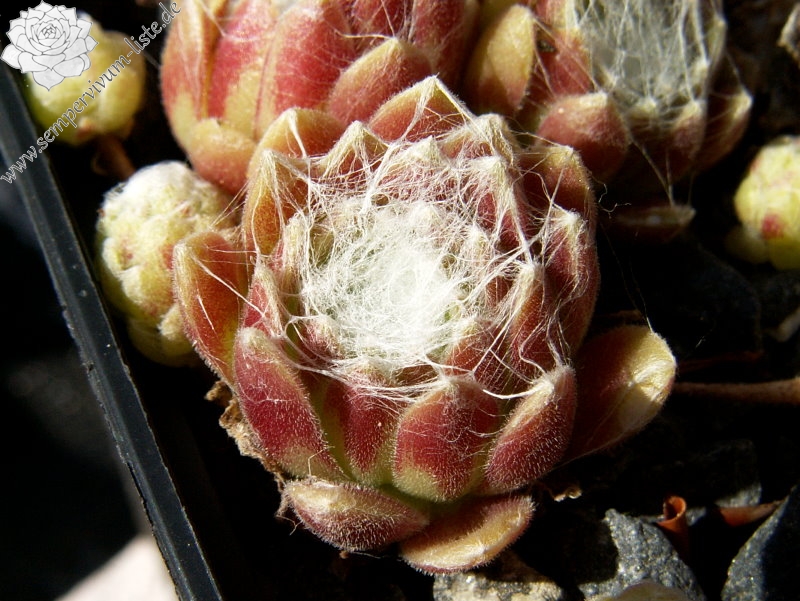 Hier haben wir einen der schönsten roten Spinnwebhauswurz. Sehr wüchsig und gute Polster bildend. Die Bespinnung nimmt im Sommer noch zu. Super!