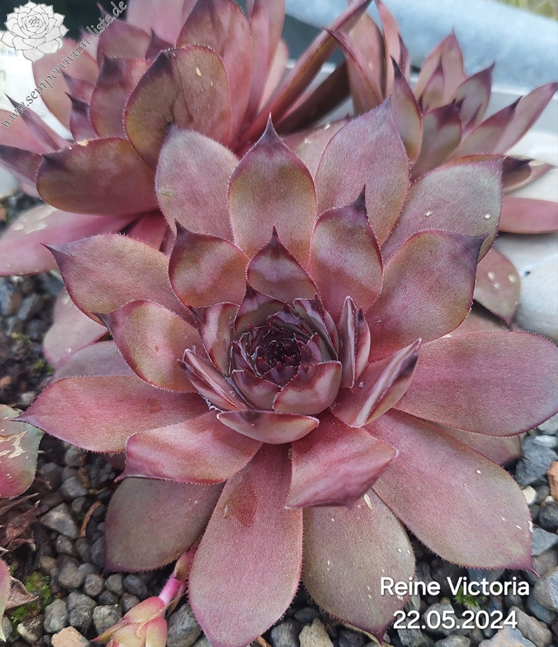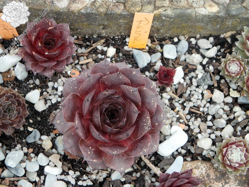 Hier haben wir eine sehr edle Pflanze. Die Rosetten erreichen einen Durchmesser von 10cm und besitzen ganz dunkle Blattspitzen. Sehr auffallend ist das kleine hellgrüne Rosettenzentrum. Eine einzigartige Pflanze, die leider nur sehr schwach sprosst.