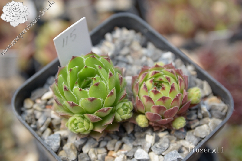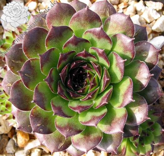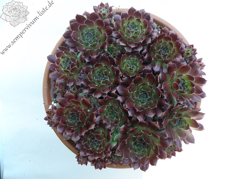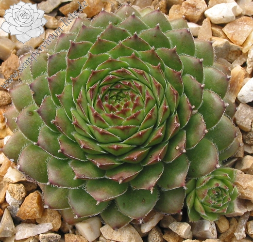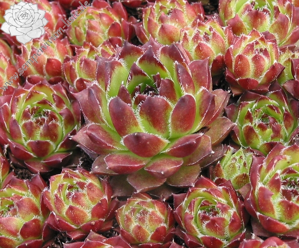 Ein älterer Kultivar aus der Schweiz mit sehr festen und kompakten Rosetten. Entstanden durch eine Kreuzung von S. marmoreum x (S. arachnoideum x S. marmoreum ssp. ballsii). Im Frühjahr hellgrün mit leuchtenden breit abgezeichneten hellbraunroten Spitzen und Blattunterseiten.