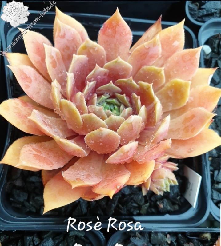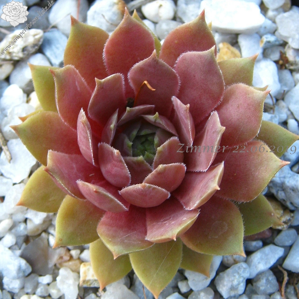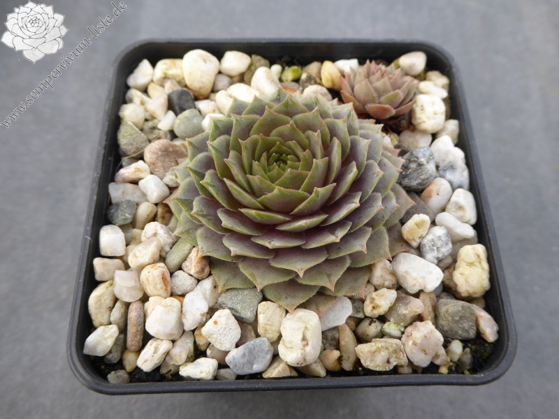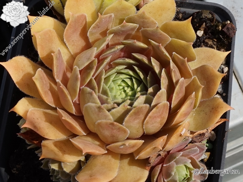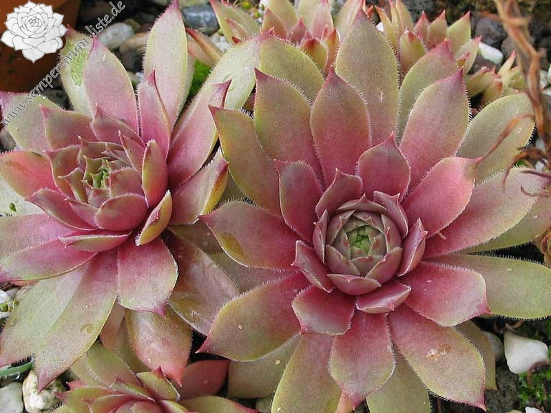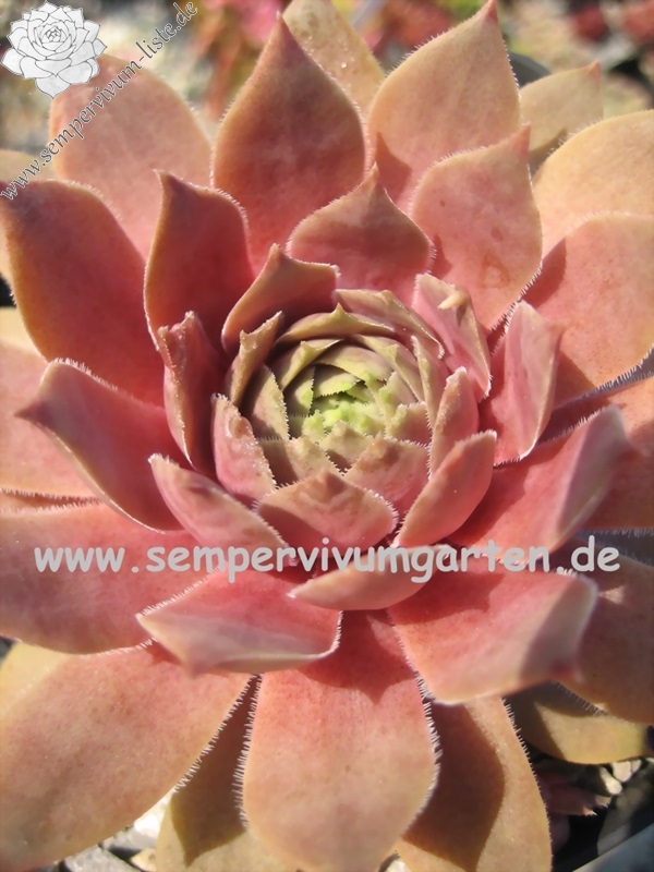 Die Farbe Rosa wird bei Sempervivum immer noch zu sehr vernachlässigt. Dies ist ein Nachkomme von 'T'Boz' der einen schönen, harmonischen Rosaton besitzt. Die Rosetten erreichen einen Durchmesser von 11cm und gehören damit mehr zu den größeren Pflanzen. Die flachen, runden Rosetten öffnen sich schalenförmig. Im Inneren zeigen die Rosetten ein schönes Rosa, dass sich nach außen hin ins rosa-braun färbt. Im Sommer zeigen die Pflanzen einen warmen hellrosa Ton. Als kleines Extra besitzen die Blätter schöne kleine, dunkle Blattspitzen die sich deutlich abheben. Eine wüchsige Pflanze die willig sprosst und zu meinen neuen Favoriten zählt.