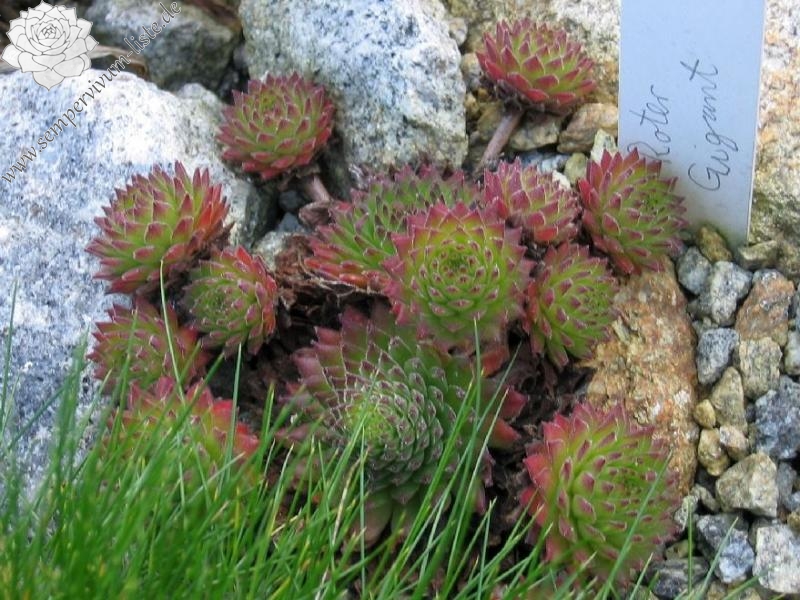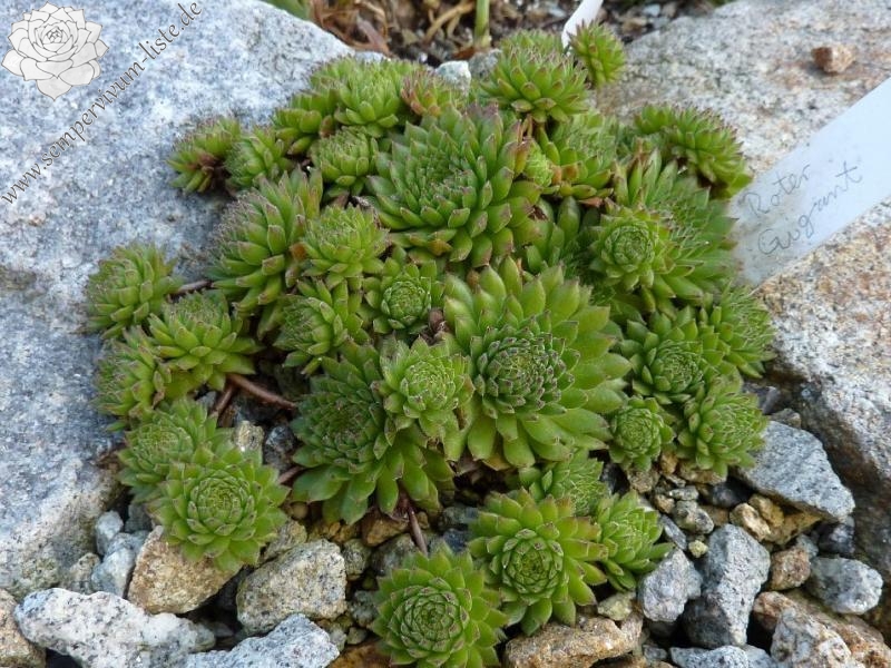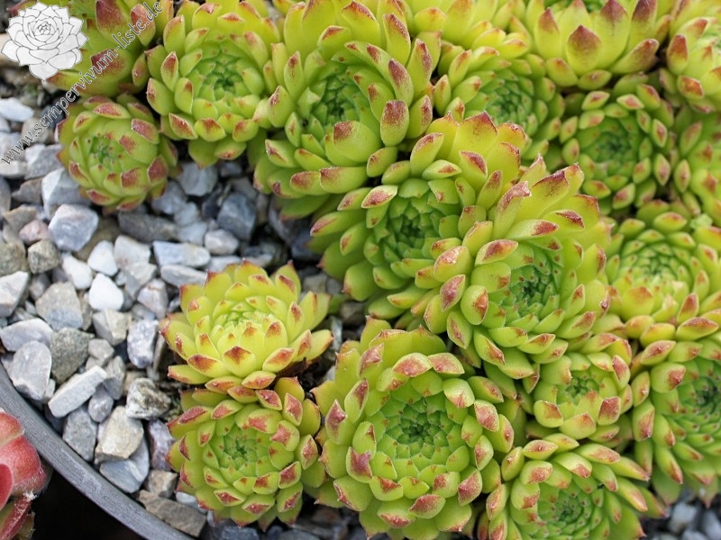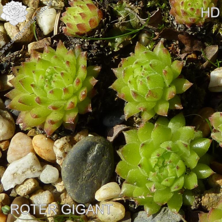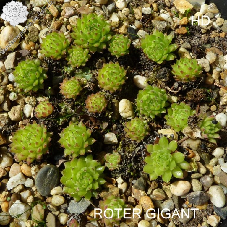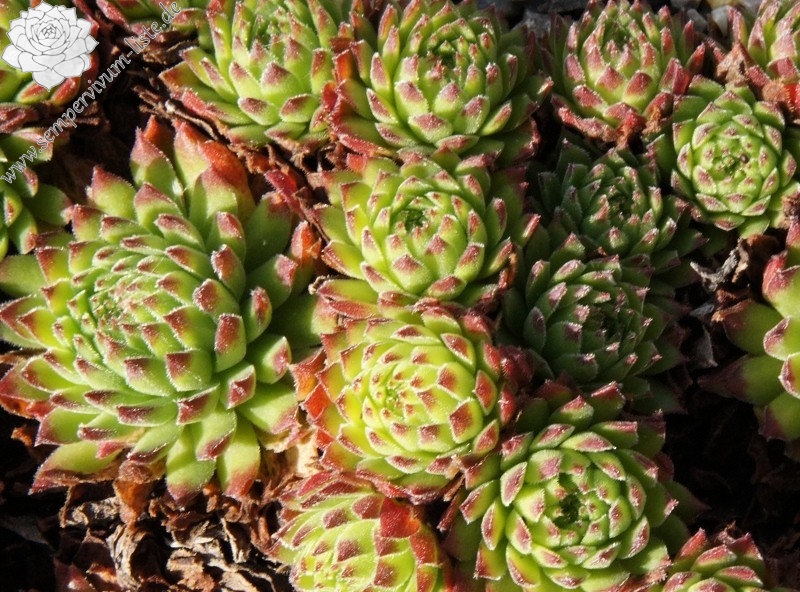 Ros. 2-3 cm, dicht, dunkelgrün, rosa Flecken, viele Ausläufer (Mont.-Hybr.)