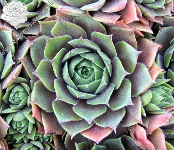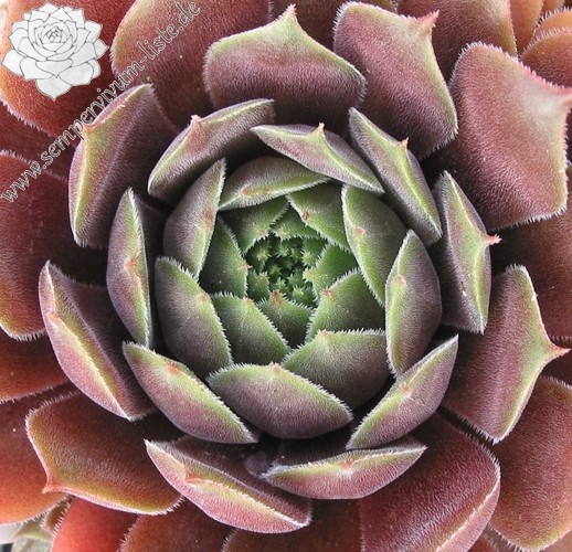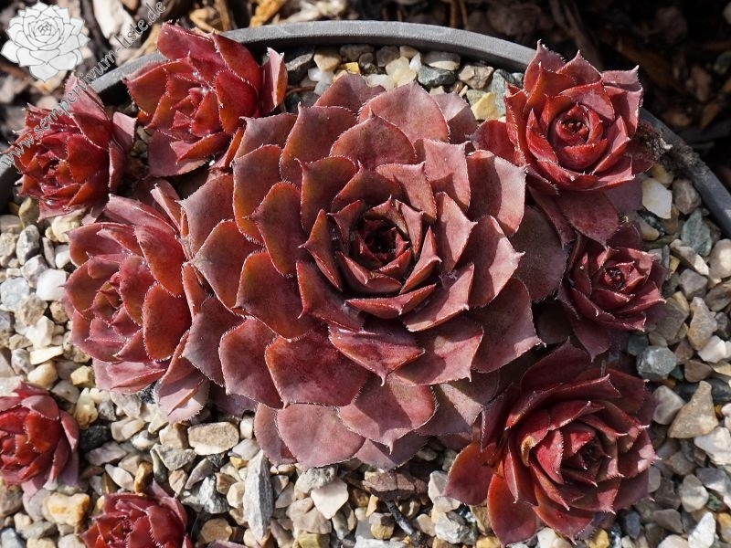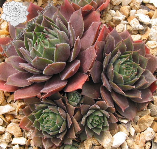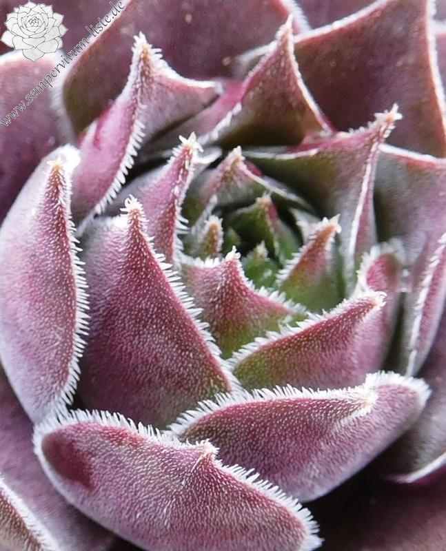 Rötliche Rosetten mit gräulichem Unterton, mittelgroß, die auch im Winter gut die Farbe halten. Fein bewimpert.