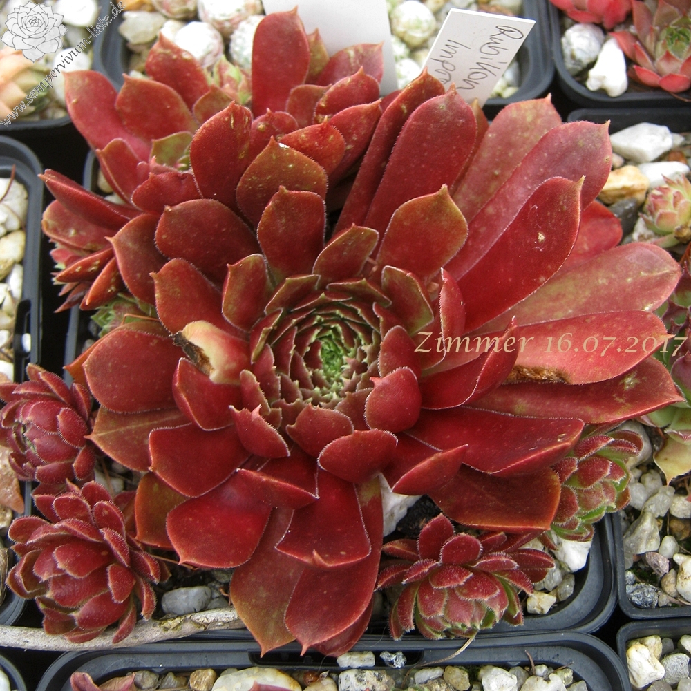 Einer der attraktivsten S. marmoreum Hybriden aus den USA von Edward Skrocki. Die mittelgroßen Rosetten verfäben sich von schwarzrot zu leuchtendem Rot mit bewimperten Rosetten, wodurch ein silbriger Effekt entsteht. David Ford schrieb: "This improved version of the original American hybrid turns a dense glittering red in the autumn."