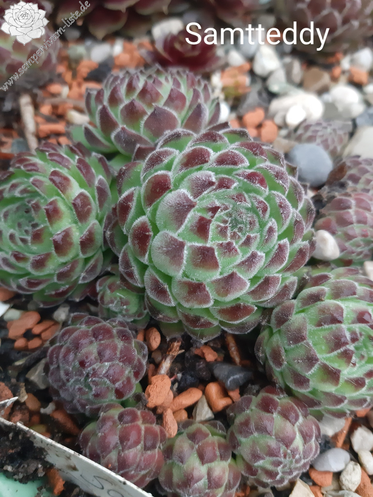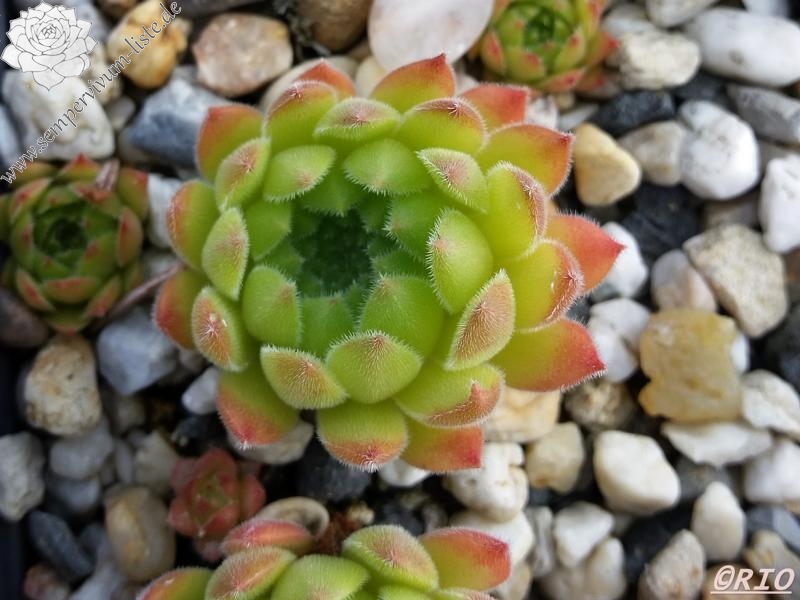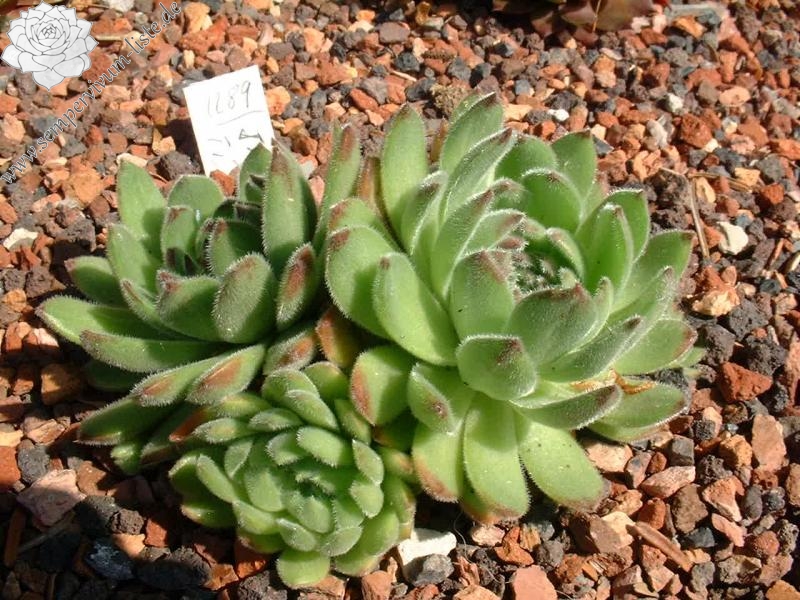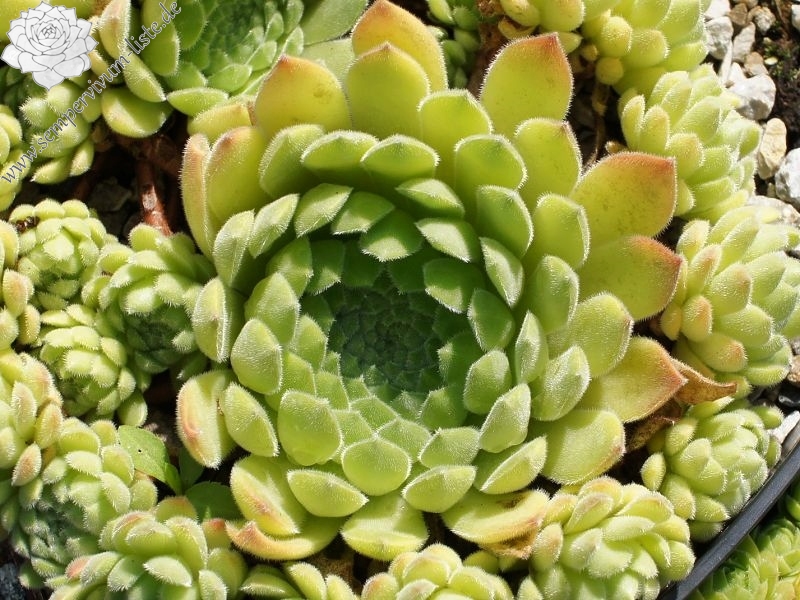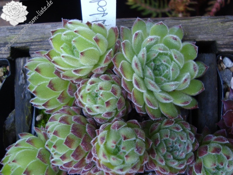 geschlossene Rosetten bis 6 cm Größe, dicke fleischige kurze Blätter, grün gelblich mit wenigen rotbraunen Spitzen, überall samtig behaart, Blüte gelb, interessantes Erscheinungsbild, Zufallssämling