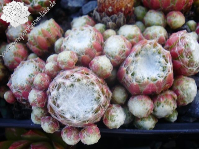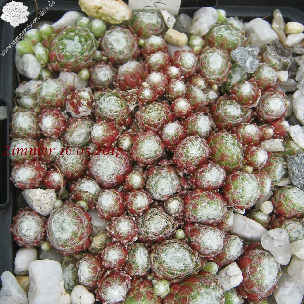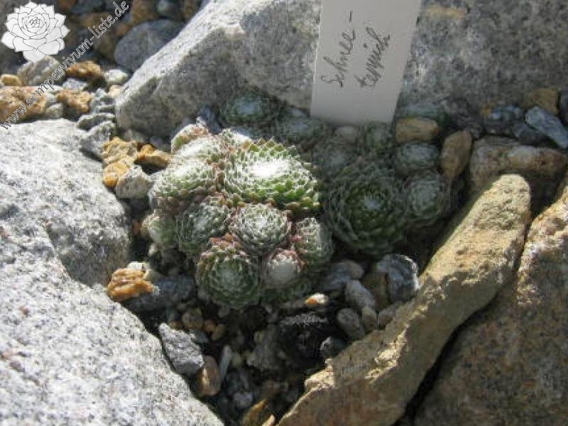 Rosetten 1,5 cm, dichtes Polster, kugelig, grün, oben weiß