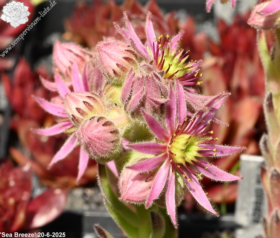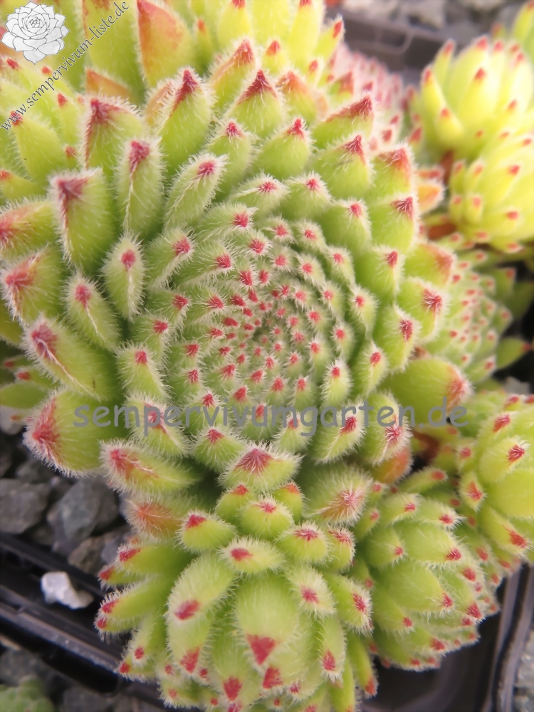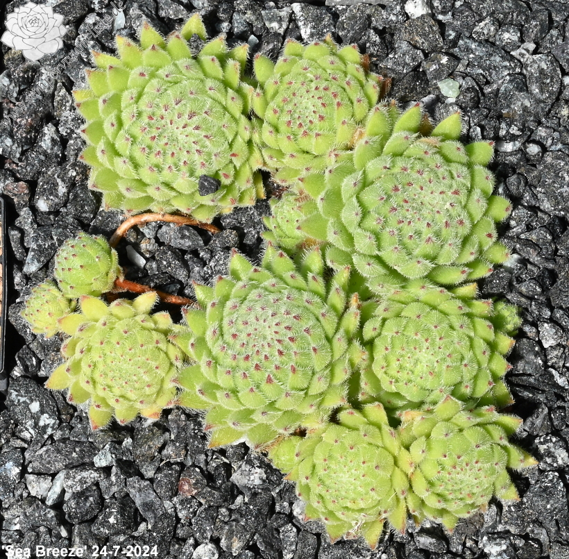 Sempervivum 'Sea Breeze' besitzt schöne hellgrüne Rosetten, mit einer dichten Behaarung. Die hellroten Blattspitzen runden das Gesamtbild hervorragend ab. Es handelt sich um eine wüchsige Pflanze, die gut sprosst. Eine tolle Pflanze!
