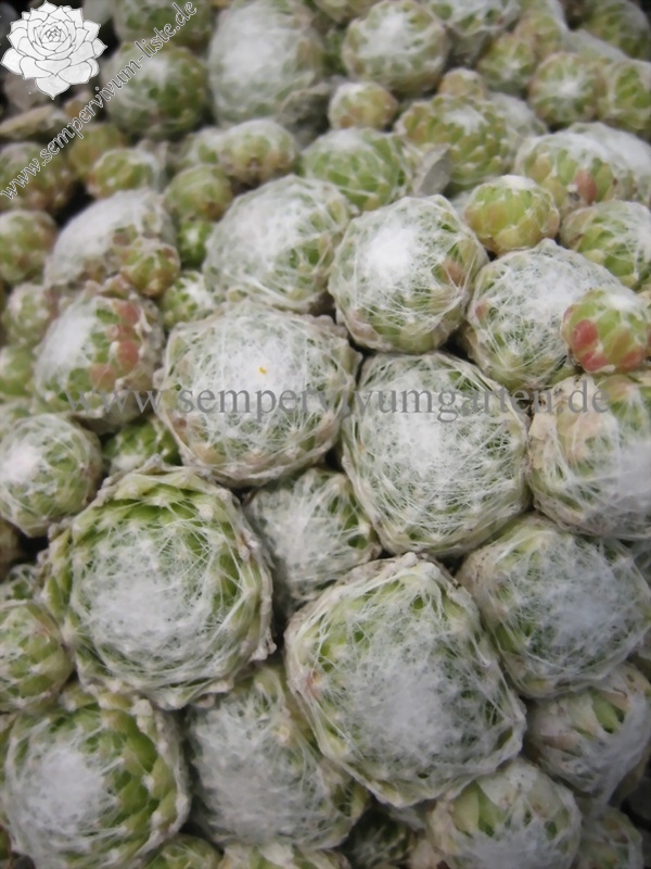 Dieser kleine Spinnwebhauswurz zeigte sich dieses Jahr von der besten Seite. Er bildet ganz flache Polster, mit vielen kleinen Rosetten, die dicht weiß besponnen sind. Eine tolle Pflanze!