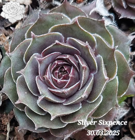 Sempervivum 'Silver Sixpence' ist eine interessante Züchtungen von Sue Thomas. Die kleineren Rosetten besitzen graugrüne Blätter mit dunkleren Blattspitzen. Leider sprossen die Pflanzen nur wenig und so wird sie immer selten bleiben. Mir gefallen die kühlen Farben besonders im Sommer! Das Foto zeigt die Pflanze im März.