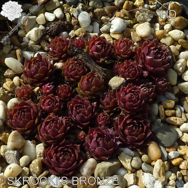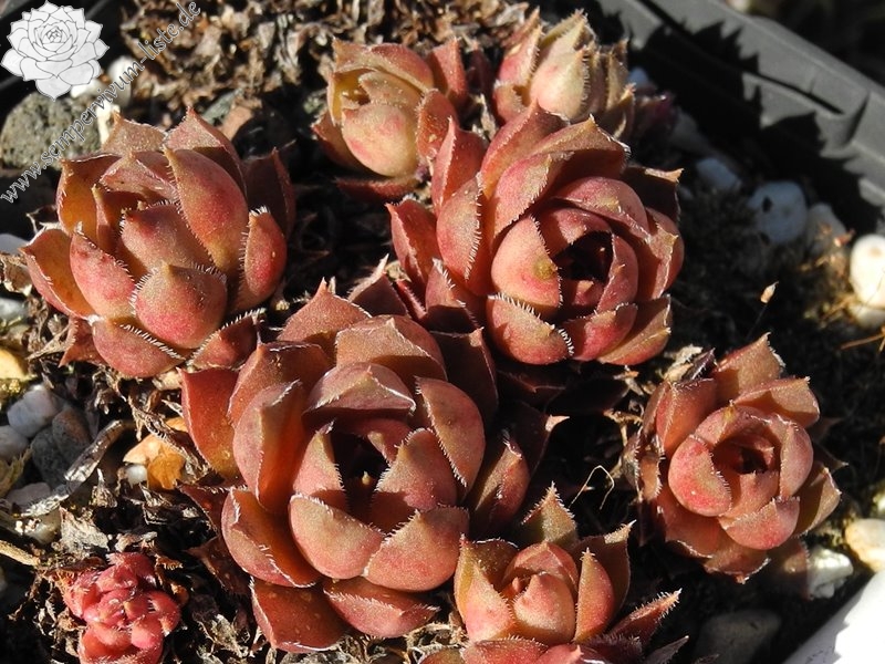 Eine bezauberne S. marmoreum 'Brunneifolium' - Hybride mit mittelgroßen, samtigen Rosetten mit relativ dicken Blättern in bräunlich-kupferfarbenen Farbnuancen. Zur kalten Jahreszeit mit auffallender rosa-bräunlichen Tönung; Langsam wachsend.