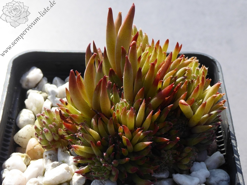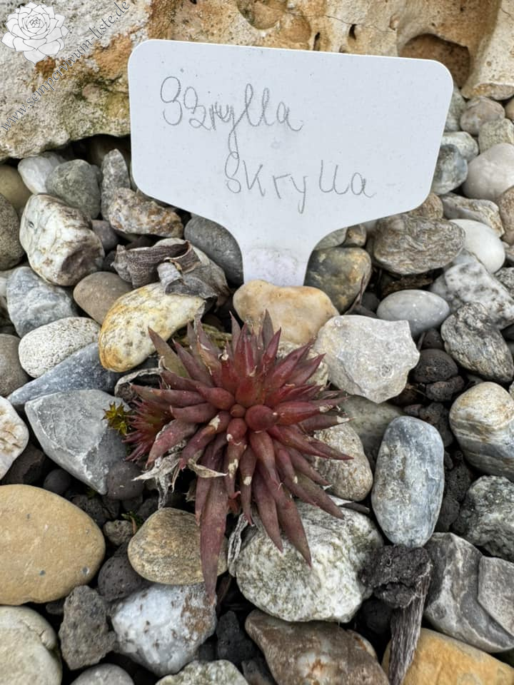 Skylla ist ein Geschwistersämling zu Nasenbär und Der Wächter im Wasser. Skylla ähnelt von der Röhrenform her auf dem ersten Blick Pinocchio ( II ) dessen Mutter auch Moby Dick ist. Farblich weichen jedoch alle 3 Geschwistersämlinge stark voneinander ab. Skylla ist ab dem zeitigen Frühjahr vorwiegend Atlasrot und hat kräftige Röhren. mit wenigen Puscheln an den Spitzen. Die seitlich verbogenen Spitzen der Röhren sind Aubergine farbig und sehen wie lackiert aus. Jüngere Röhren sind Atlasrot übergehend in ein Ockergelb mit ganz feinen rötlichen Pünktchen. Ab Mai wechselt Skylla ihre Farbe und wird hellgelb/grünlich mit einer Aubergine farbigen Spitze. Skylla kindelt ganz eng an der Mutter. Neu gewachsene Kindel sind leicht behaart und haben wunderschöne, wie kleine Sterne aussehende, Puschel an den Spitzen. Das ergibt einen besonders schönen Kontrast. Im Juli nach starker Sonneneinstrahlung verblasst sie sehr. Sowie sie jedoch in voller Sonne steht leuchtet sie schon aus der Ferne. Sie verträgt Hitze, Nässe und auch Frost.