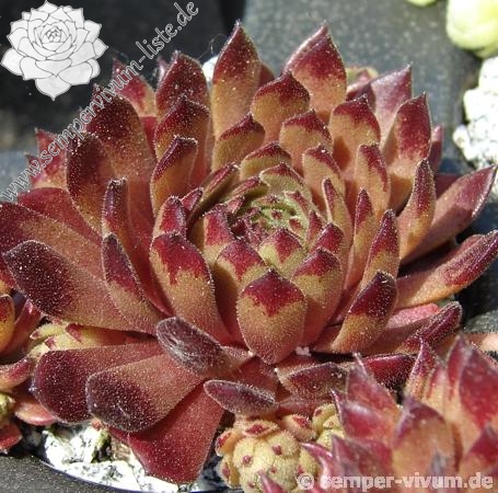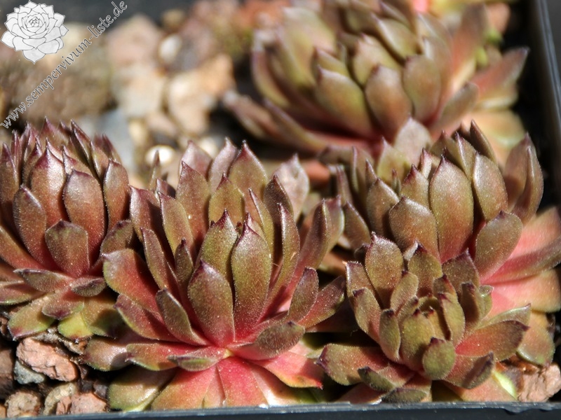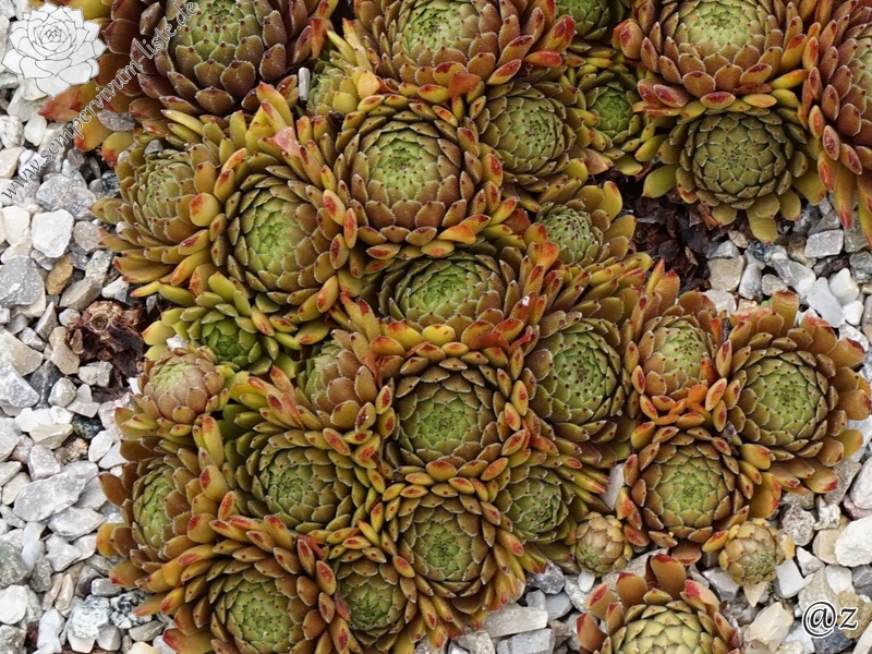 Sempervivum 'Space Dog' zeigt mittelgroße Rosetten. Er ist sehr wüchsig und bildet ganz dichte Polster. Besonders die Sommerfärbung gefällt mir gut.