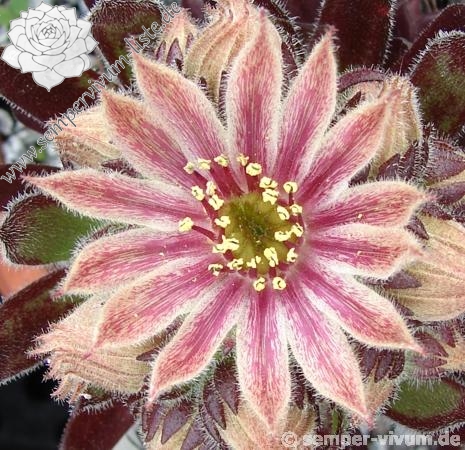 Wegen der bräunlichen Färbung und dem auffallend silbrigem Glanz fanden wir es sehr passend, unsere Neuheit nach einem Song von Tori Amos zu benennen. Ende Mai öffnen sich sehr große, bezaubernde Blüten. Die gestreiften Petalen sind mit den verschiedensten Rosatönen bemalt. Diese Hauswurz besitzt eindeutig S. grandiflorum Blut. Man könnte sie jedoch auch als den großen Bruder vom 'Zwergengnom' ansehen, obwohl sie eigentlich nicht verwandt sind. Es ist eine Sämlingsauslese von 'Black Mini', ein Geschwistersämling zu 'Apollo's Frog'.