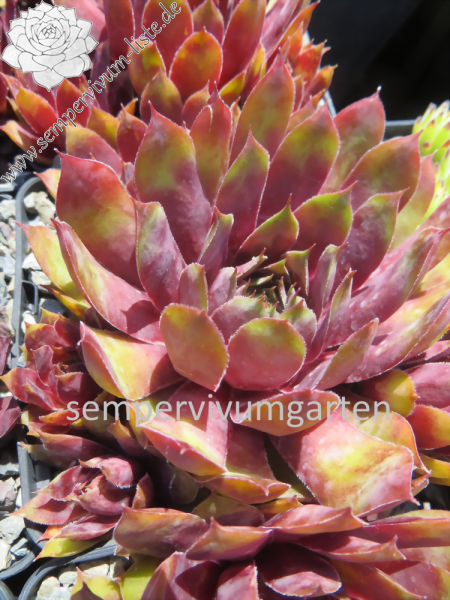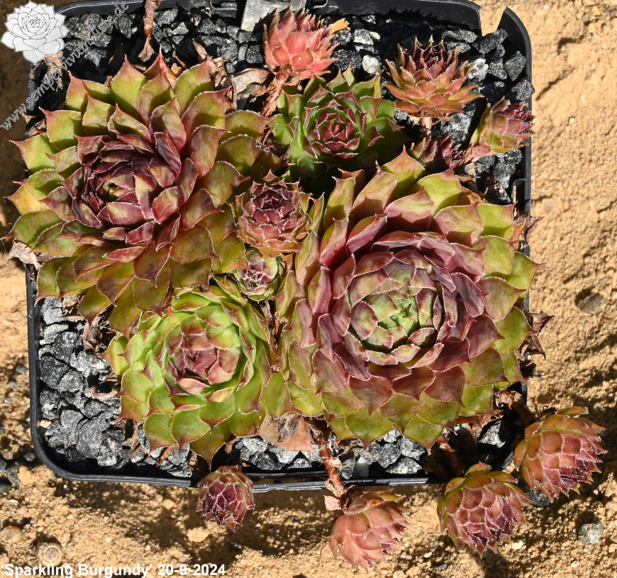Sempervivum ‘Sparkling Burgundy’ ist ein größerer Hauswurz mit auffallend bunter Wirkung. Mir gefallen die offenen Rosetten, mit den breiten Blättern, sehr gut.