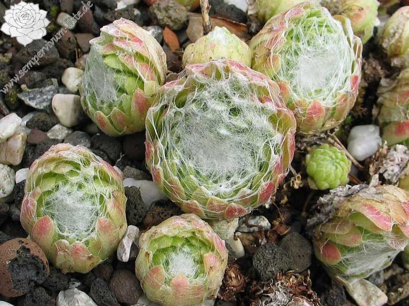Eine neue Züchtung der Ingwers nursery aus Grosbritannien. Von dort stammen viele bewährte Kultivare aus dem Reich der Stauden! Sicherlich fragen sich viele, gibt es eigentlich noch Unterschiede der Spinnwebsorten, und ich stelle immer wieder fest - ja die gibt es! Die Rosetten dieser Auslese sind relativ groß und werden oft von den Nachbarrosetten eingedrückt.