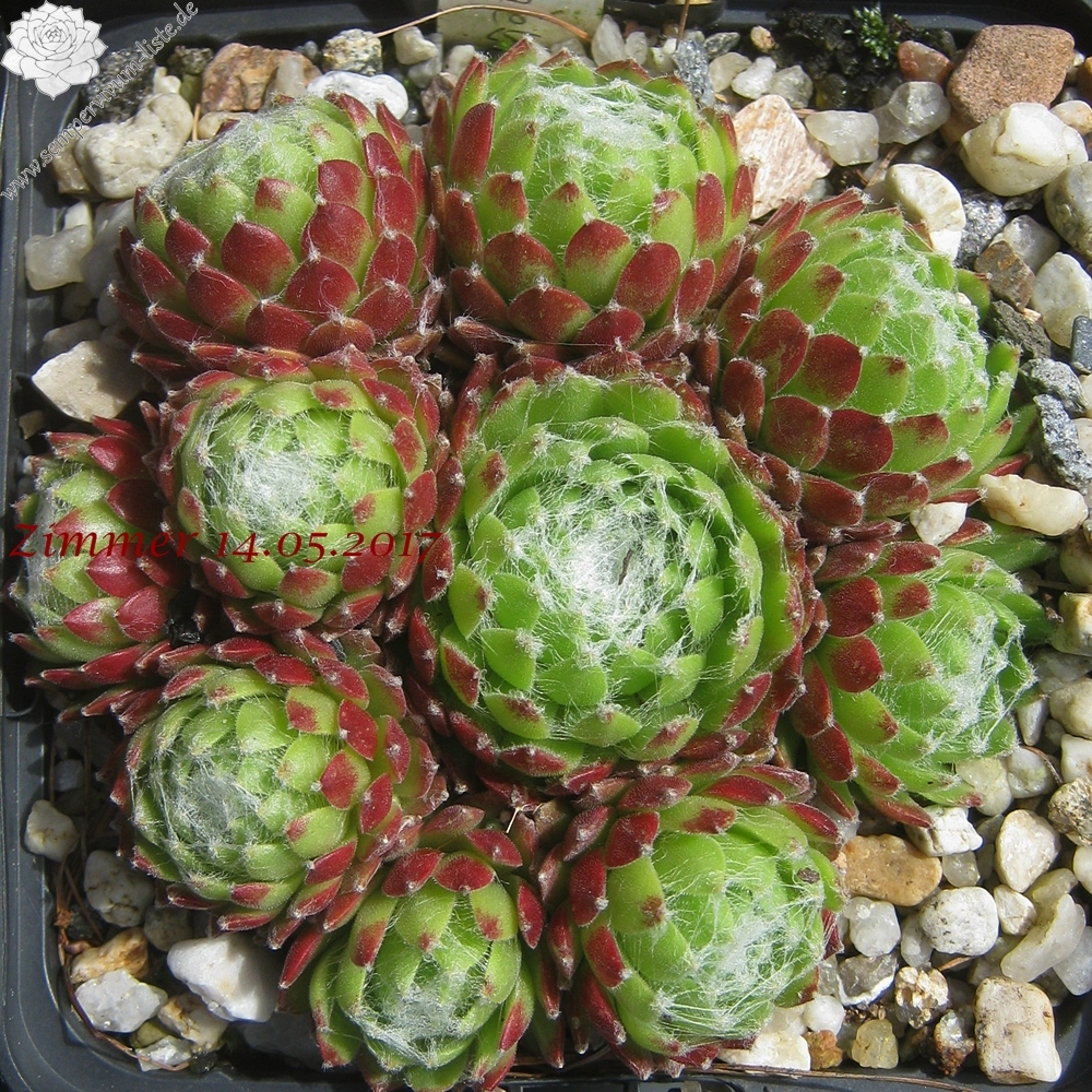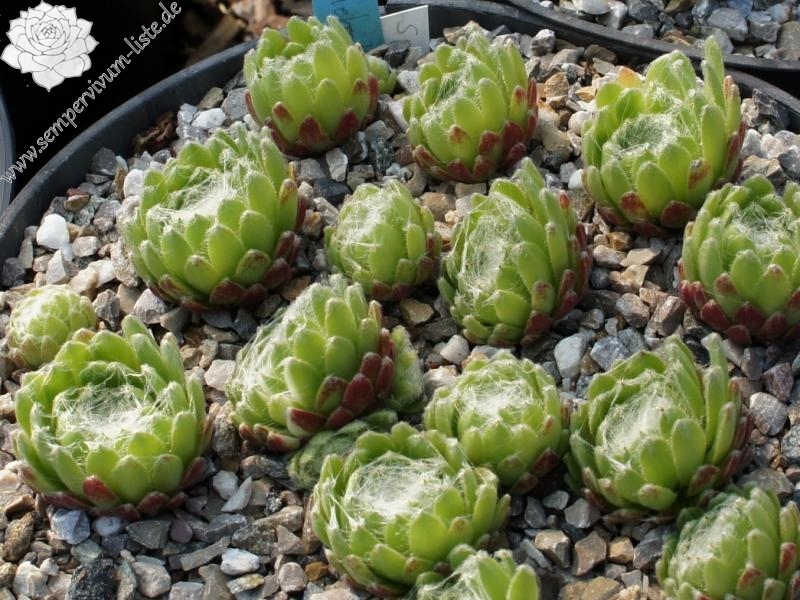 Rosetten 3-4 cm, grün mit rosa, weiße Spinnweben