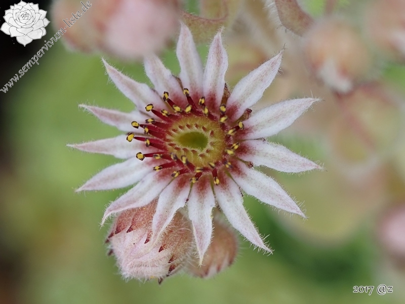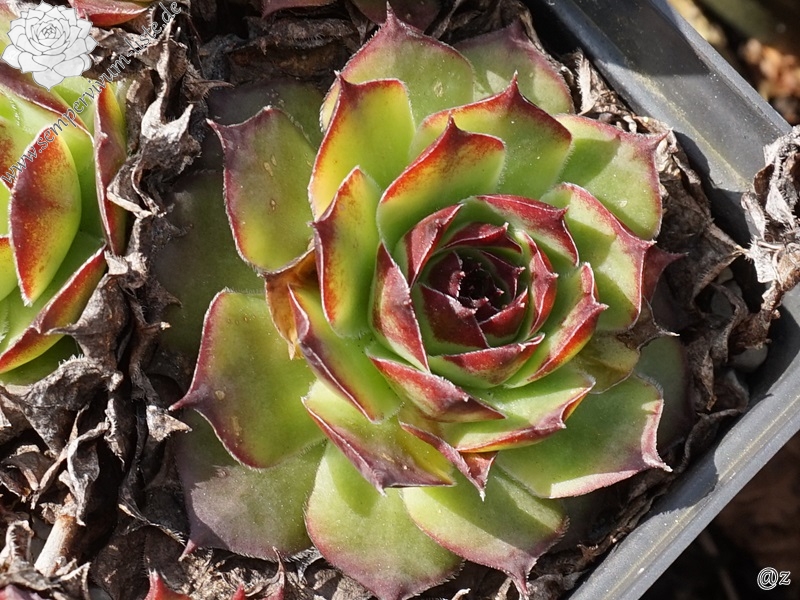 Ros. 3 cm, breit, blaugrün, rosa Rand, Blätter breit
